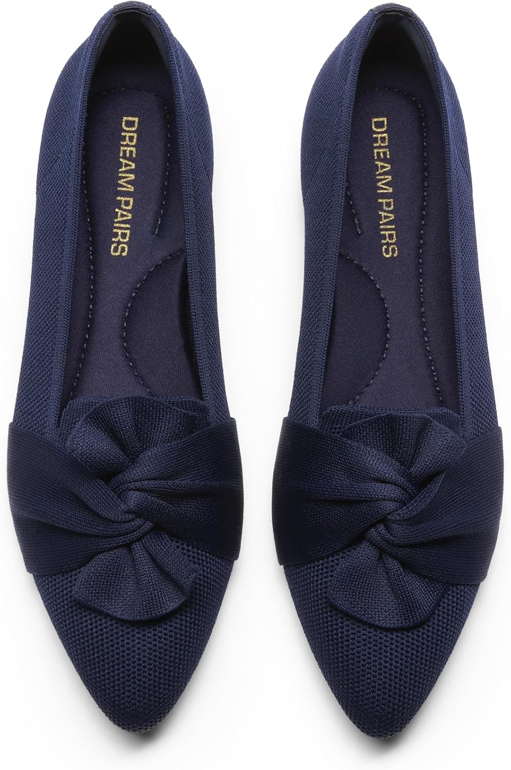 DREAM PAIRS Flats for Women Pointed Toe Foldable Knit Ballet Flats Comfortable Slip-On Dress Shoes Elegant Bow Flats for Work Office Business Casual Travel