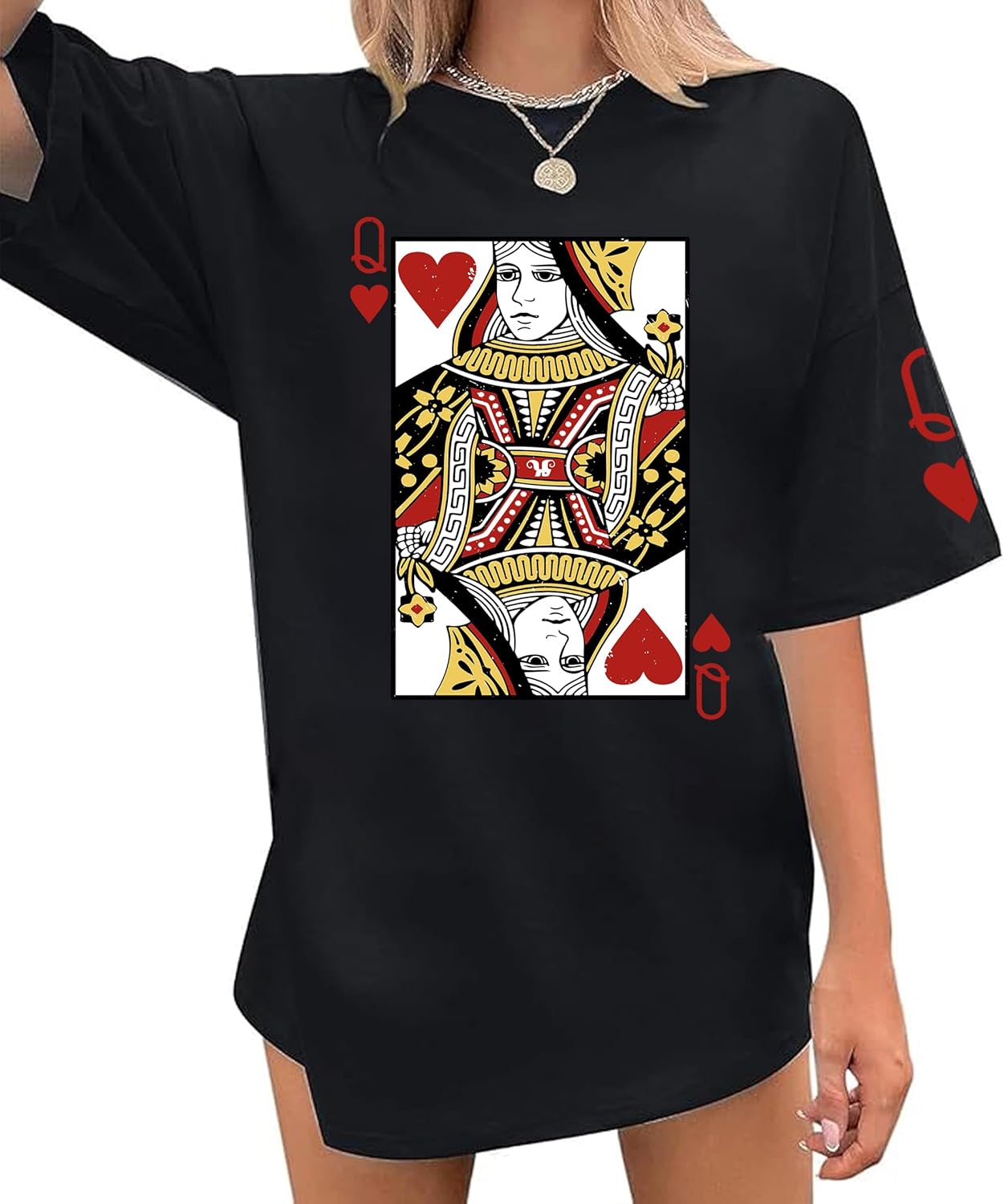 Queen of Hearts Shirt for Women Oversized Funny Vintage T Shirts Cute Lady Graphic Short Sleeve Tee Tops