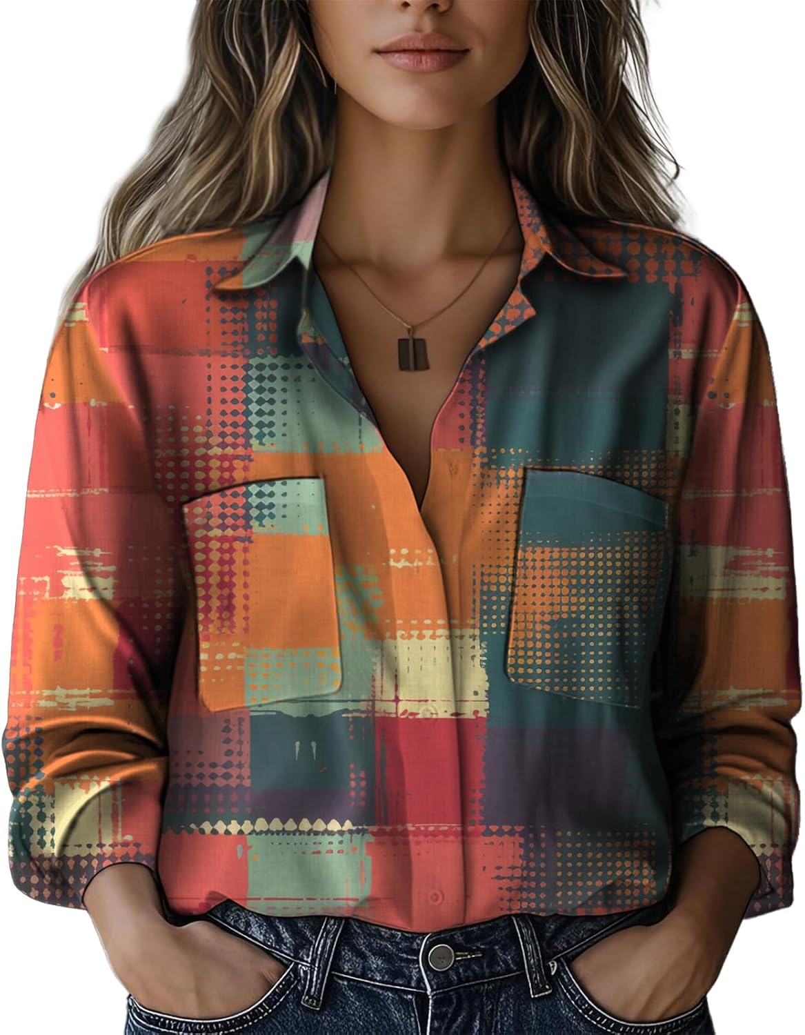 MARSVOVO Casual Long Sleeve Shirt for Women Loose Fitting Button Down Trendy Lightweight Oversized Breathable Blouses