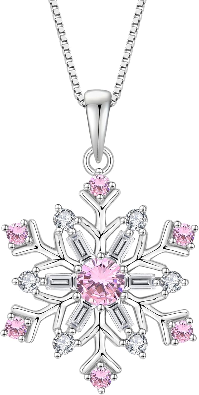 Snowflakes Necklace 925 Sterling Silver Pendant Birthstone Jewelry for Women