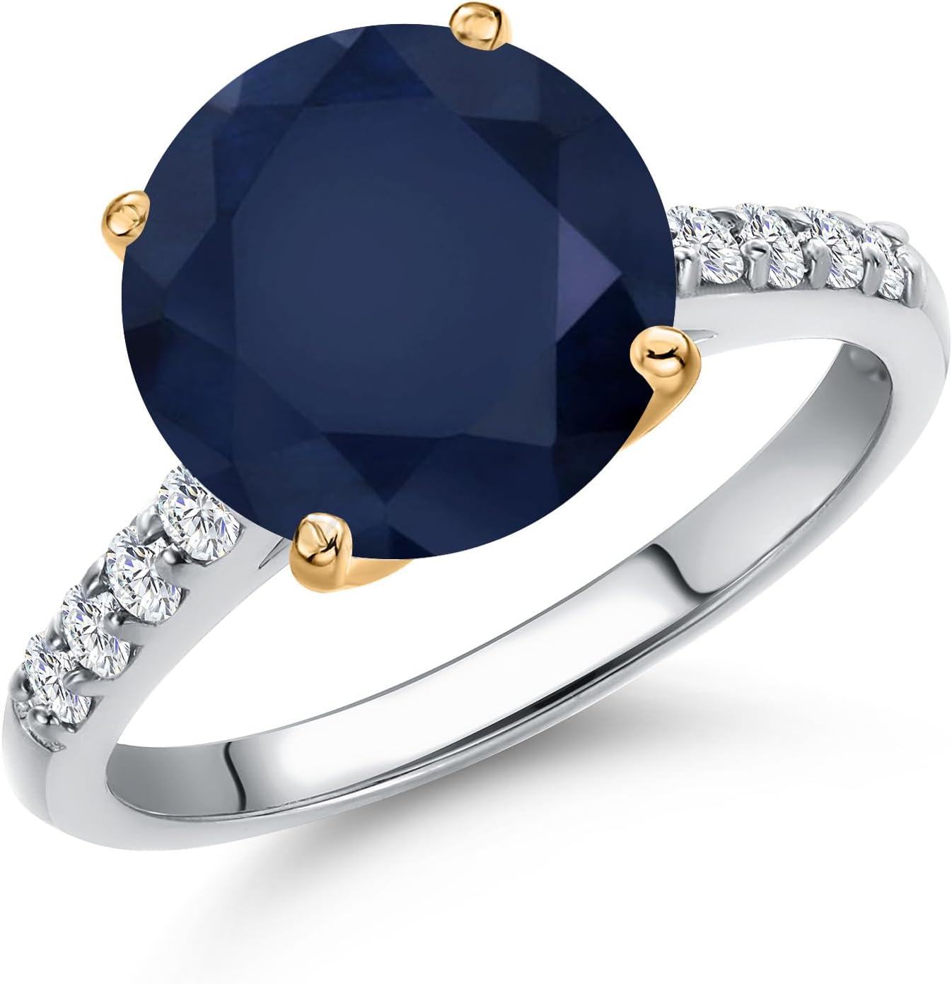 925 Silver and 10K Yellow Gold Gemstone Birthstone and White Lab Grown Diamond Accent Engagement Ring For Women | Round 10MM and 1.7MM | Wedding Anniversary Promise Ring | Sizes 5, 6, 7, 8, 9