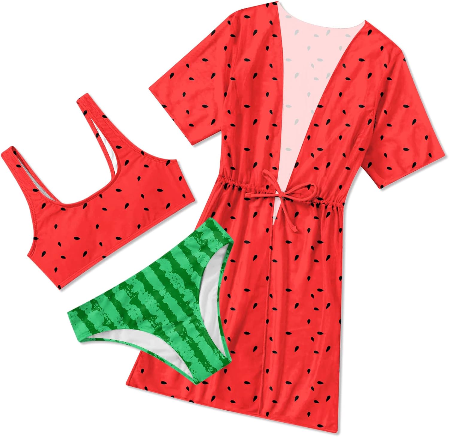 AIDEAONE 5-16T Girls Bathing Suit 3 Piece Swimsuit Drawstring Quick Dry Tankini with Cover Ups