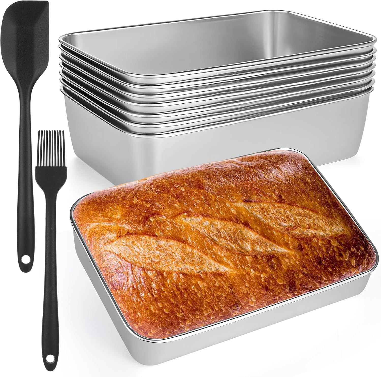 - [Food-Grade Material]: bread loaf pans for baking bread made of premium food-safe stainless steel with any chemical coatings, the polished rust-resistant finish withstands high heat without flaking or toxic emissions—your healthiest choice for daily bread baking and the superior alternative to aluminum foil and unsafe non-stick pans