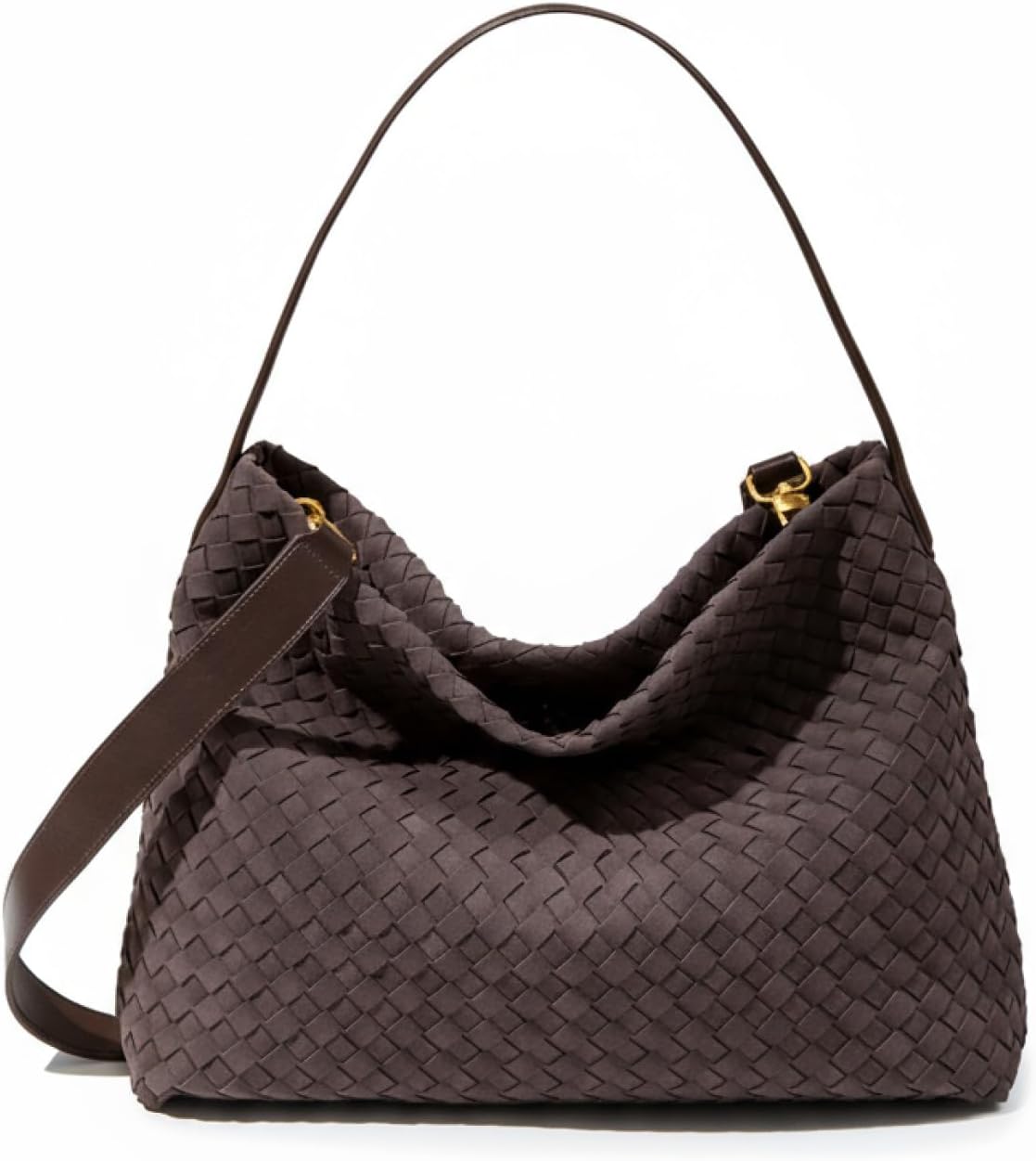 Women's Braided Leather Tote Bag Stylish Suede Hobo Shoulder Bag with Woven Details