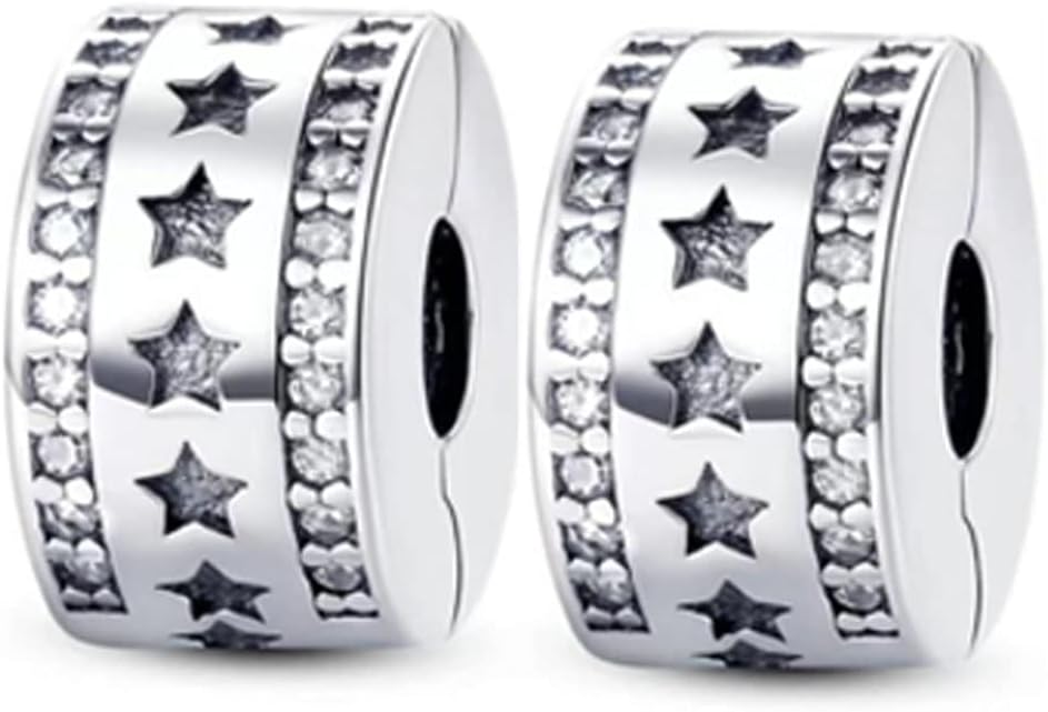 2pc Clip Spacer Charms Bracelets for Women 925 Sterling Silver Blue White Crystal Clip Lock Spacer Stopper Charm Bead for Bracelet
