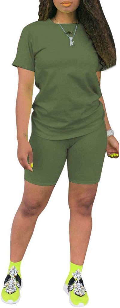 Aomice Women's Summer 2 Piece Outfits Tracksuits Biker Short Workout Jogger Sets