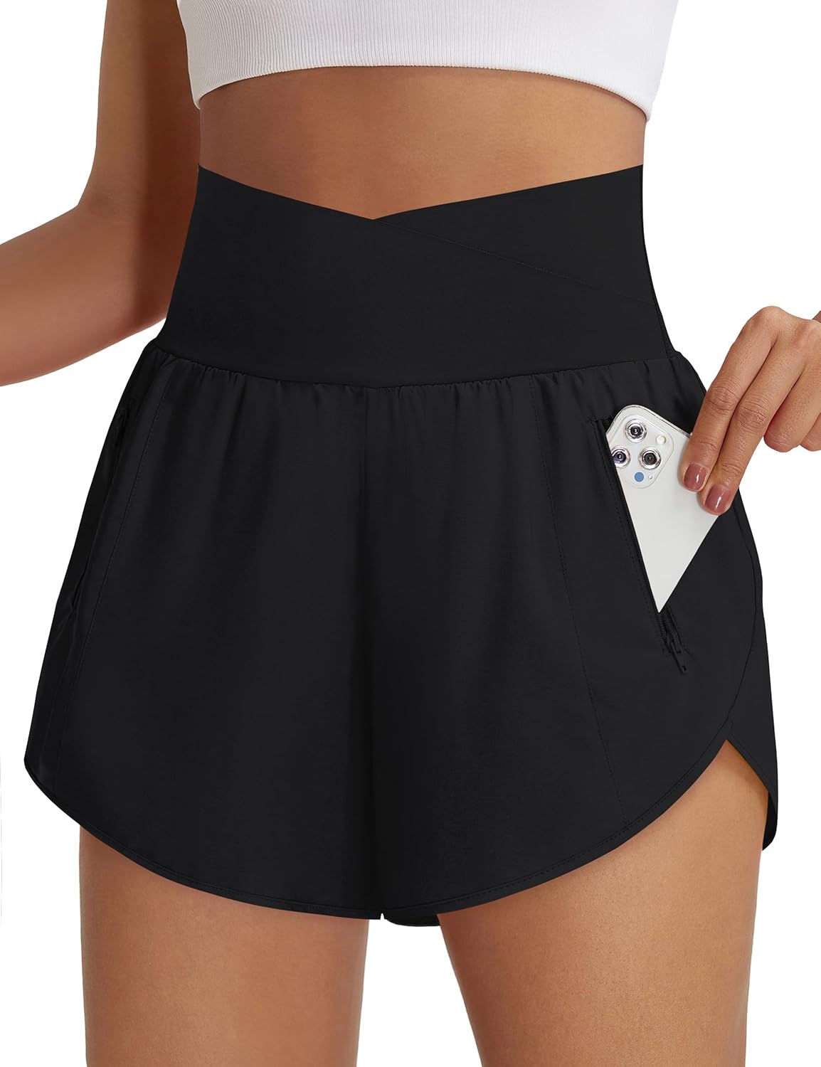 BMJL Women's Athletic Shorts High Waisted Running Short Pockets Gym Elastic Quick Dry Workout Shorts 2.5"