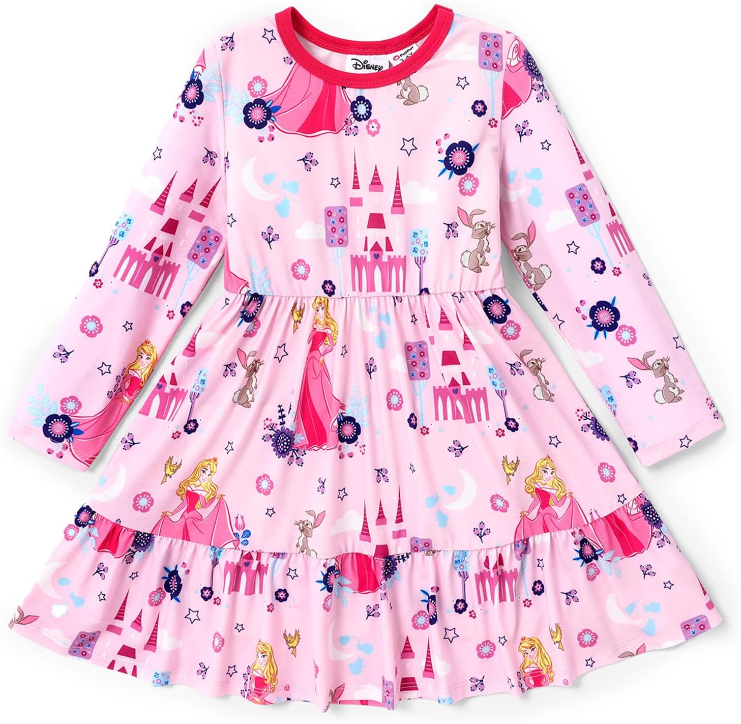 Disney Princess Frozen Elsa Minnie Stitch Floral Toddler Girl Dress A Line Long Sleeve Kids Casual Fall Clothes 2-6 Years