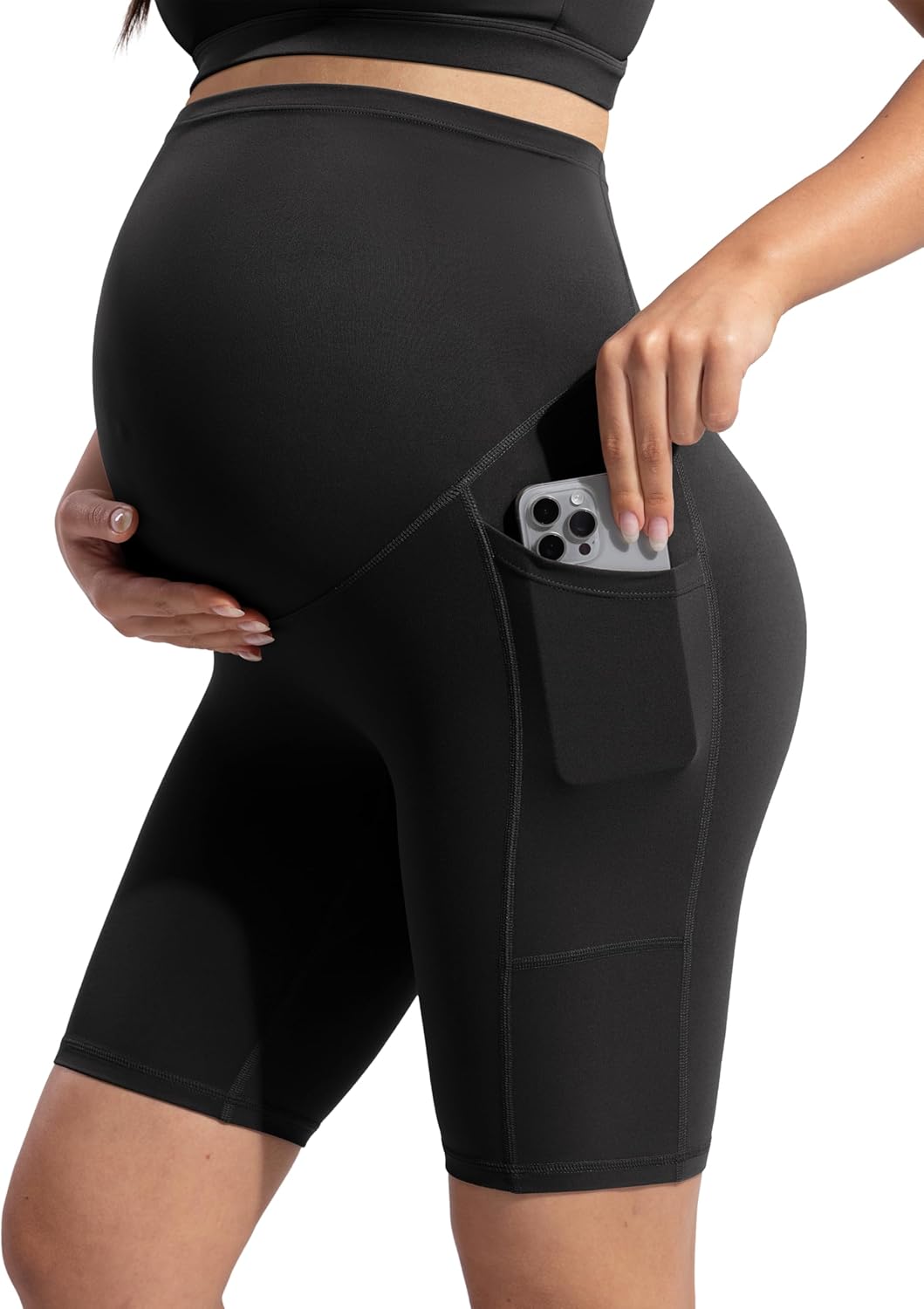 POSHDIVAH Women's Creamluxe Maternity Biker Shorts Over The Belly with Pockets - 6"/8" Summer Pregnancy Yoga Workout Short