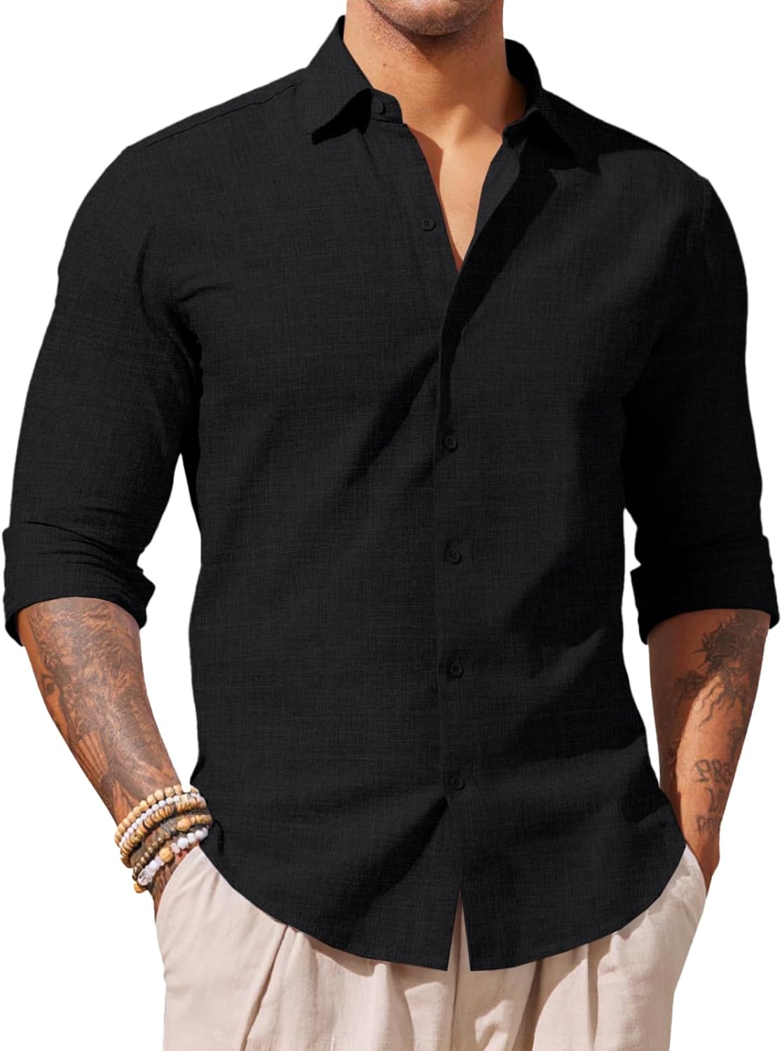 Yousify Mens Button Down Shirts Long Sleeve Casual Linen Dress Shirt Lightweight Beach Wedding Tops