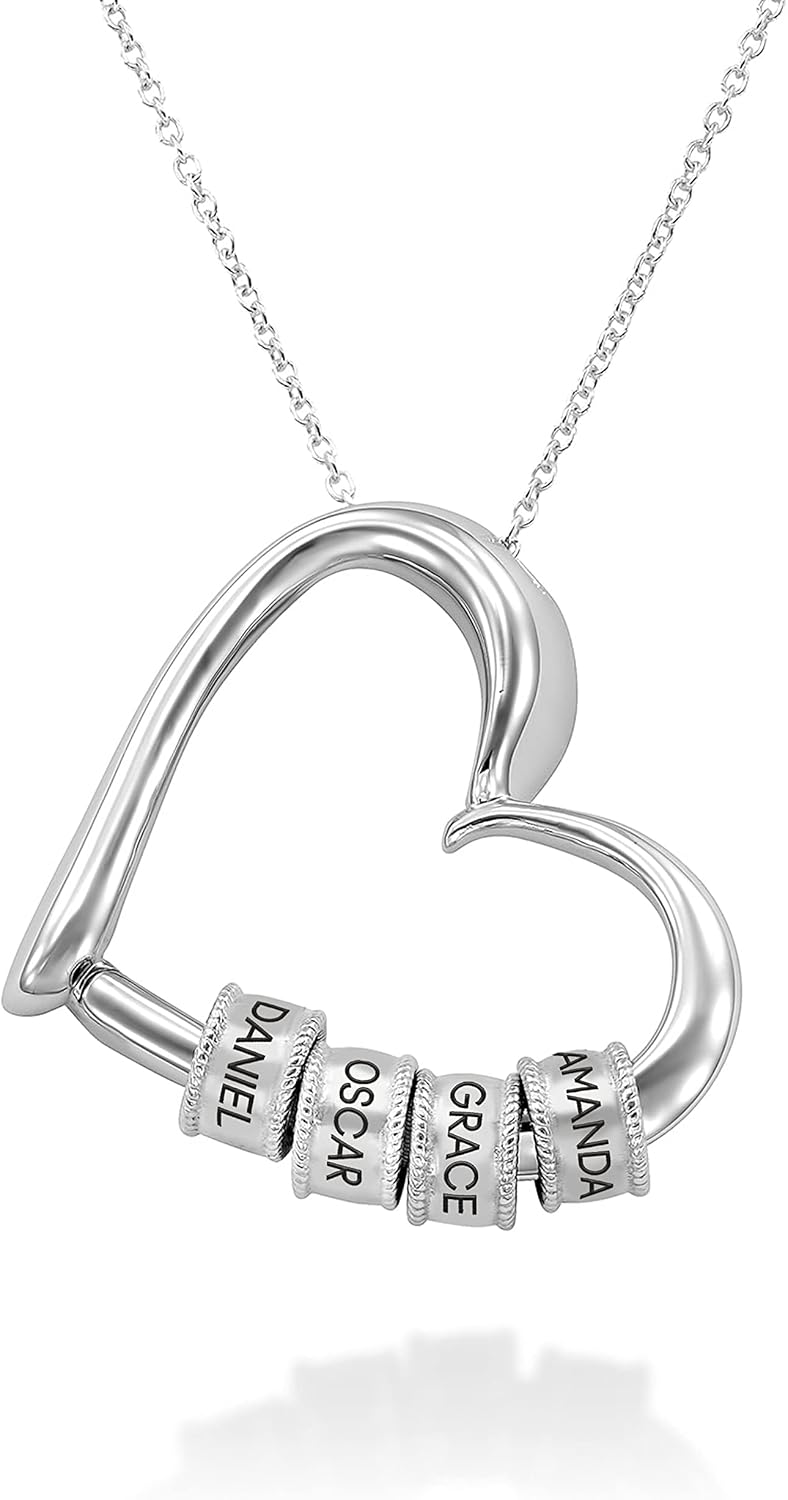 MyNameNecklace Personalized Charming Heart Necklace with Engraved Beads - Dainty Gift for Mom, Grandma, Her, Women - Custom Jewelry for Christmas
