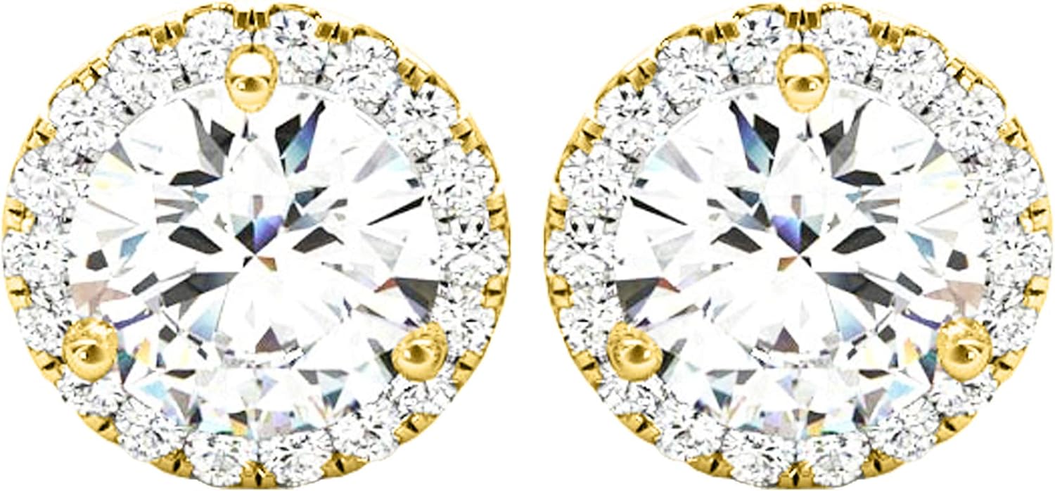 Houston Diamond District 1 to 6 Carat IGI CERTIFIED LAB GROWN Round Halo Diamond Earrings for Women Push Back IDEAL CUT (D-E Color VS1-VS2 Clarity)