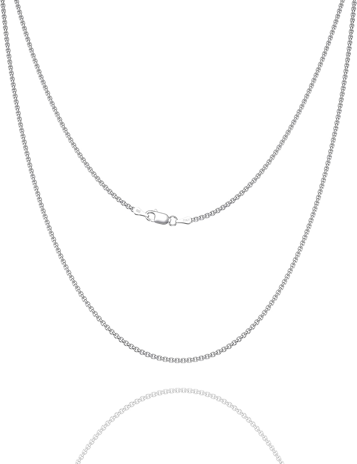 925 Sterling Silver Box Chain for Women 2/3/4/5mm Mens Sturdy Non-Fading Mens Silver Chain 16/18/20/22/24/26/30 Inches