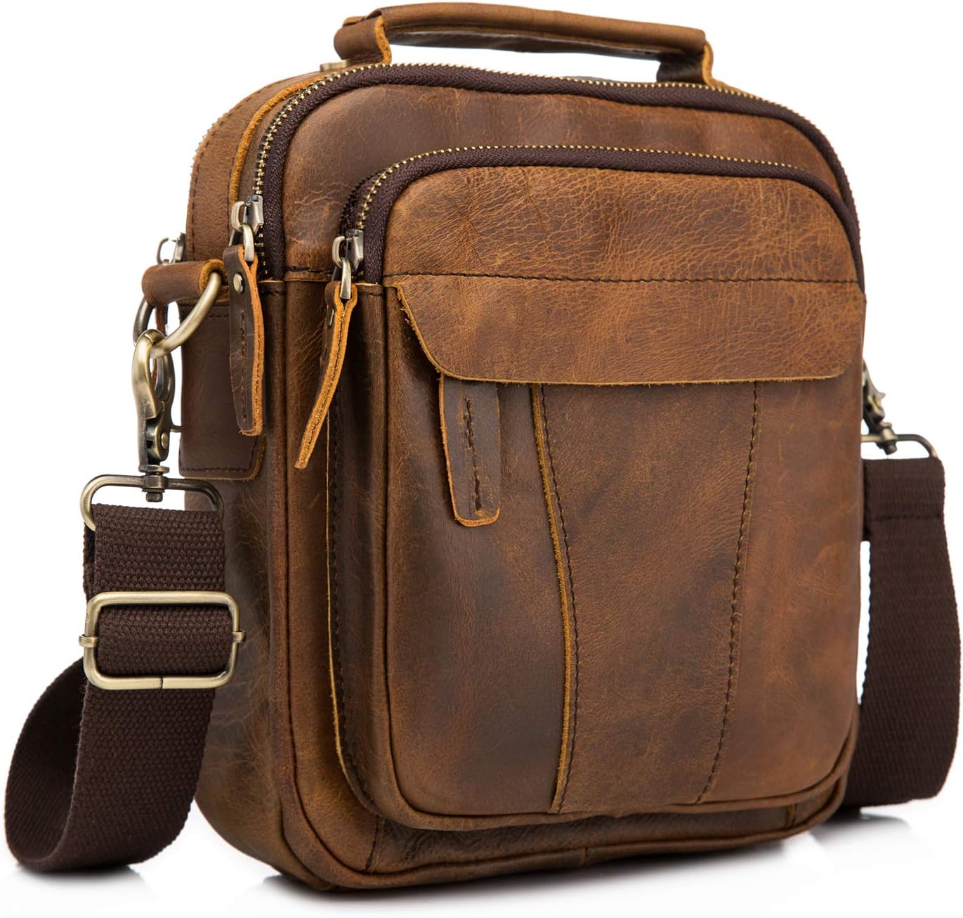 Le'aokuu Mens Crazy Horse Leather Cross Body Messenger Shoulder Satchel School Bag For 8" Tablets