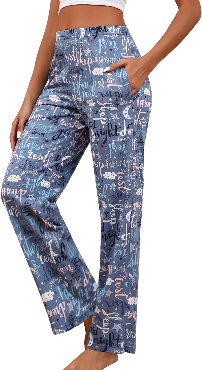 PNAEONG Women Cotton Pajama Pants Comfy Pj Bottoms Soft Printed Lounge Pant with Pockets