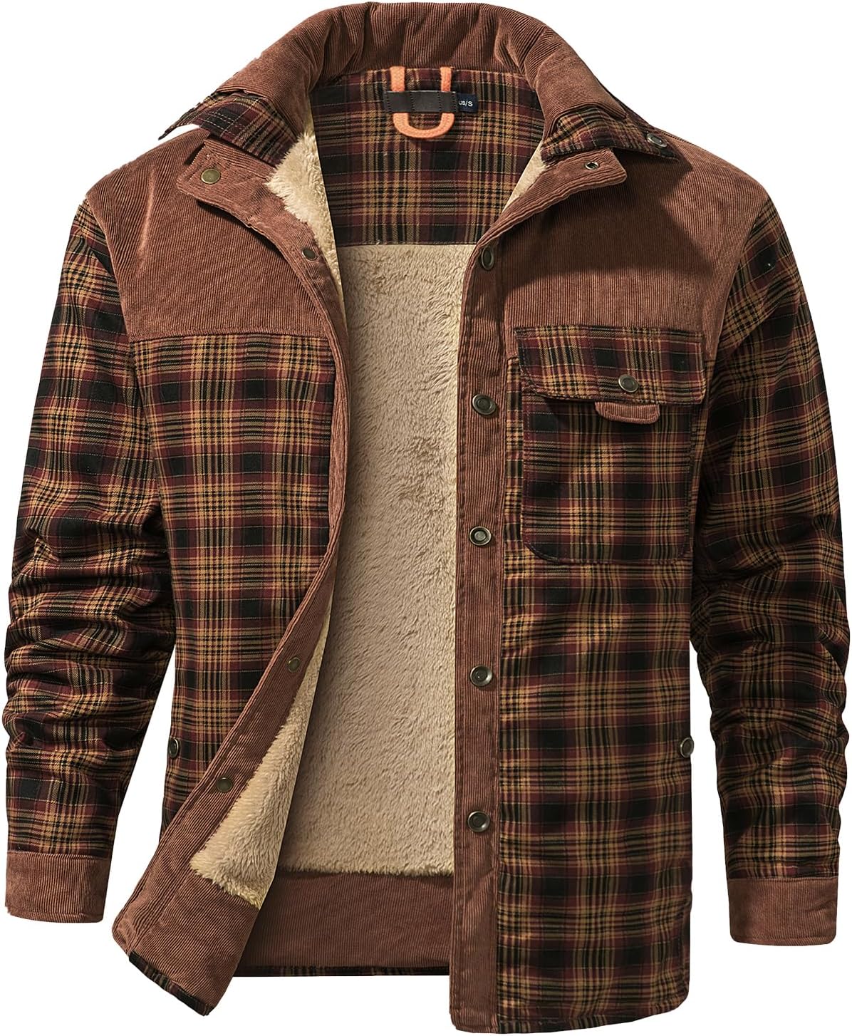 PEHMEA Men's Flannel Shirt Jacket Plaid Sherpa Lined, Warm Fleece Coat for Fall Winter Outdoor