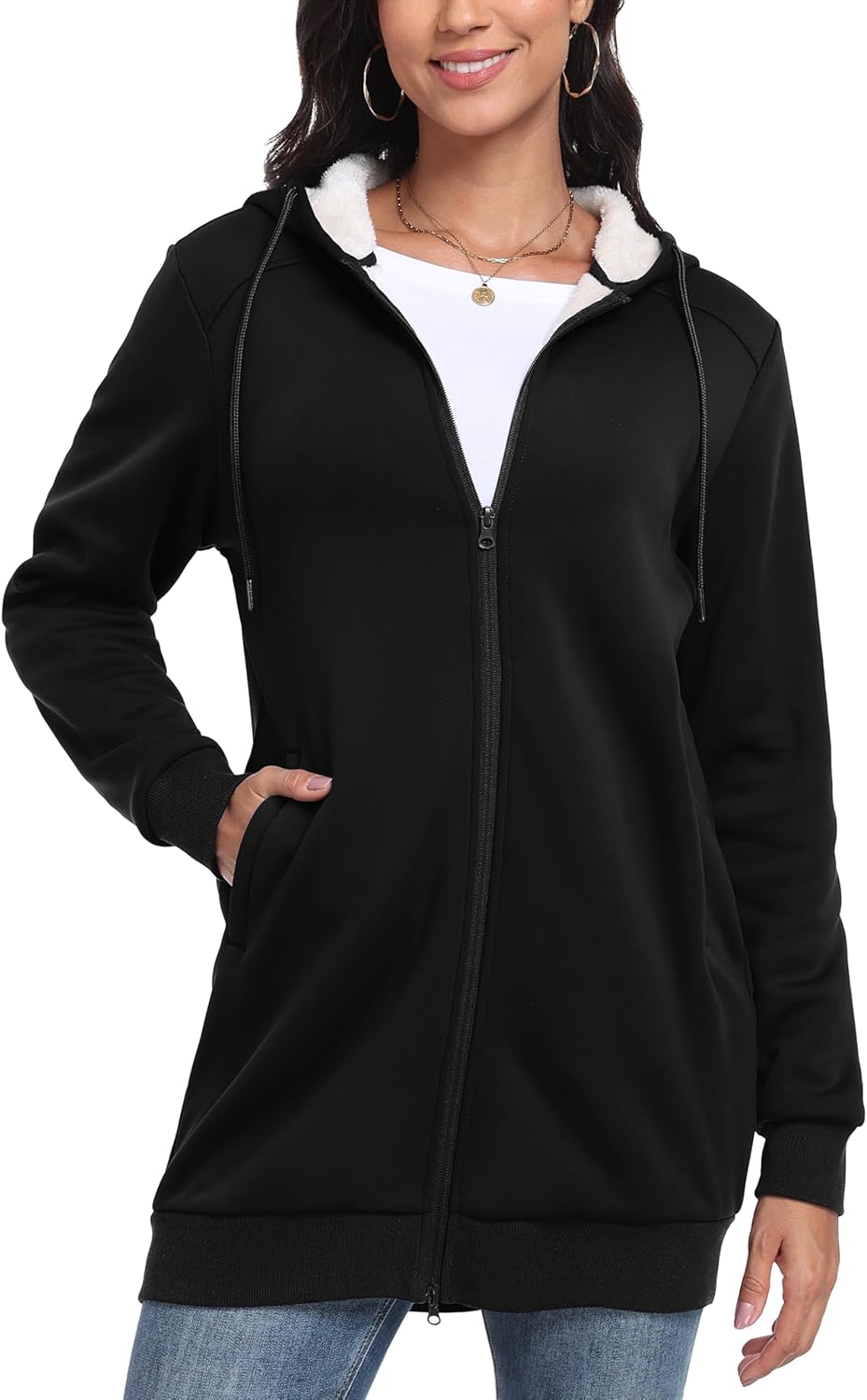MoFiz Womens Zip Up Hoodies Fleece Long Hoodies Warm Casual Hooded Sweatshirt Jacket with Pockets