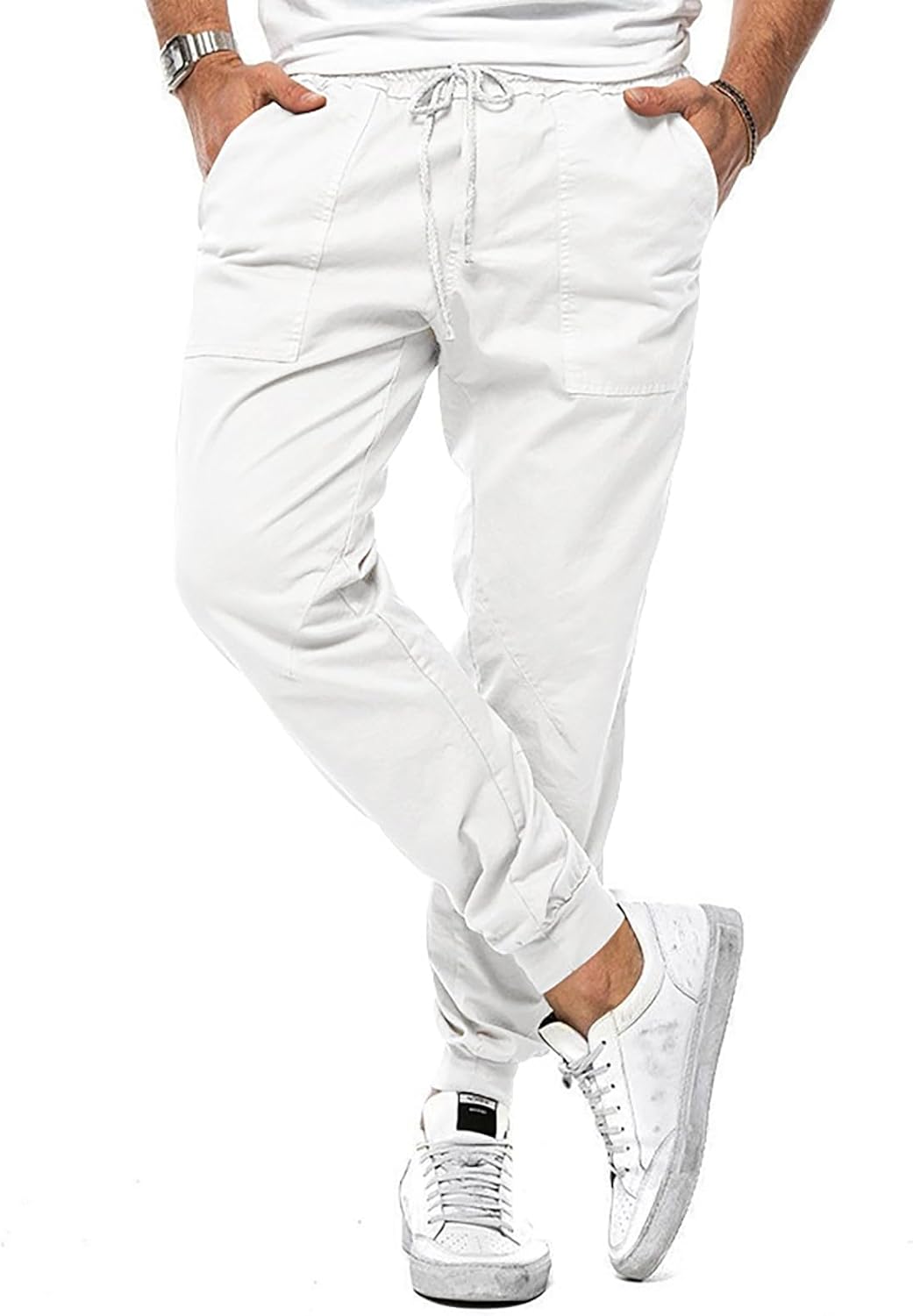 Mens Drawstring Cargo Jogger Pants Polyester Elastic Waist Casual Outdoor Hiking with Side Deep Pockets