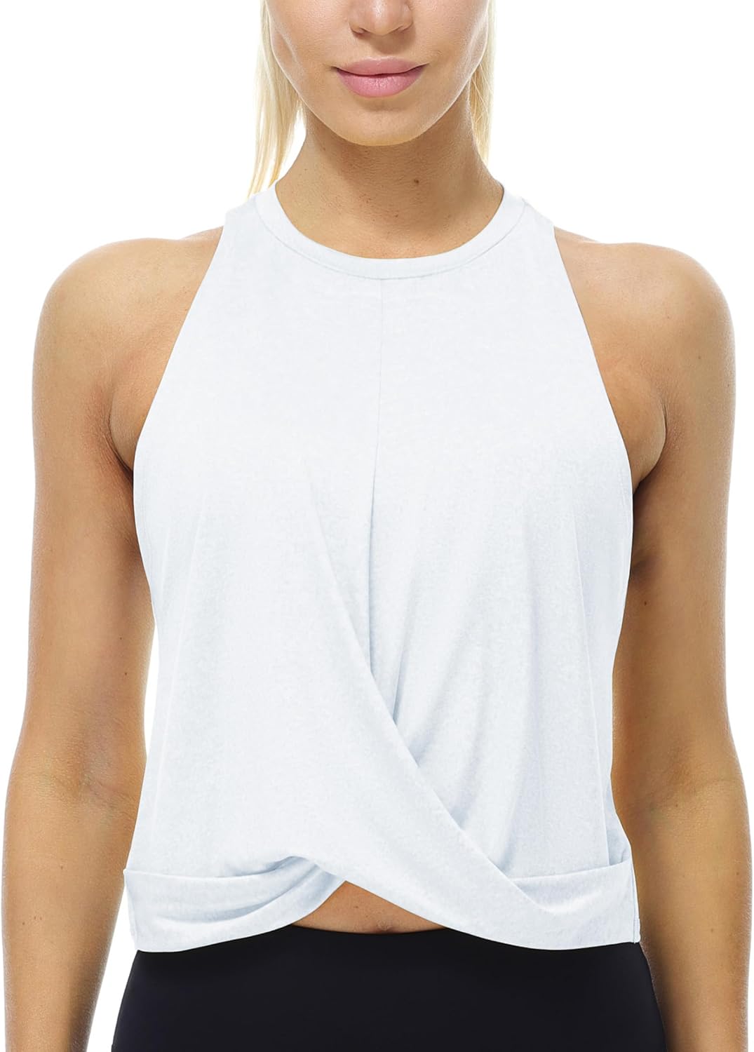 icyzone Racerback Workout Tank Tops for Women, High Neck Athletic Gym Running Yoga Crop Tops