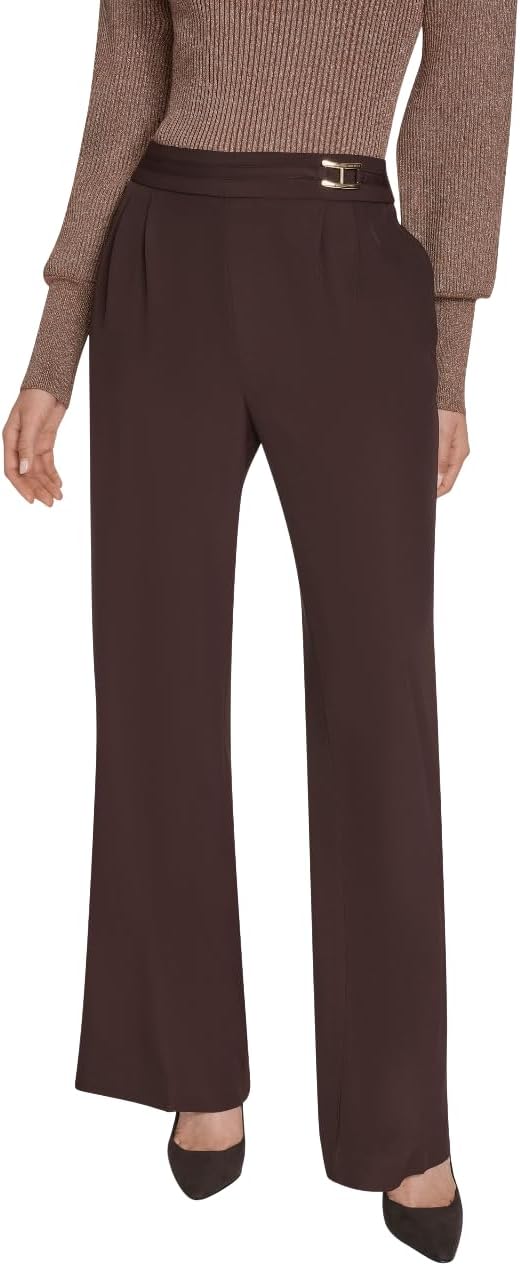 Halston Womens Long Hardware Detail Wide Leg Pant