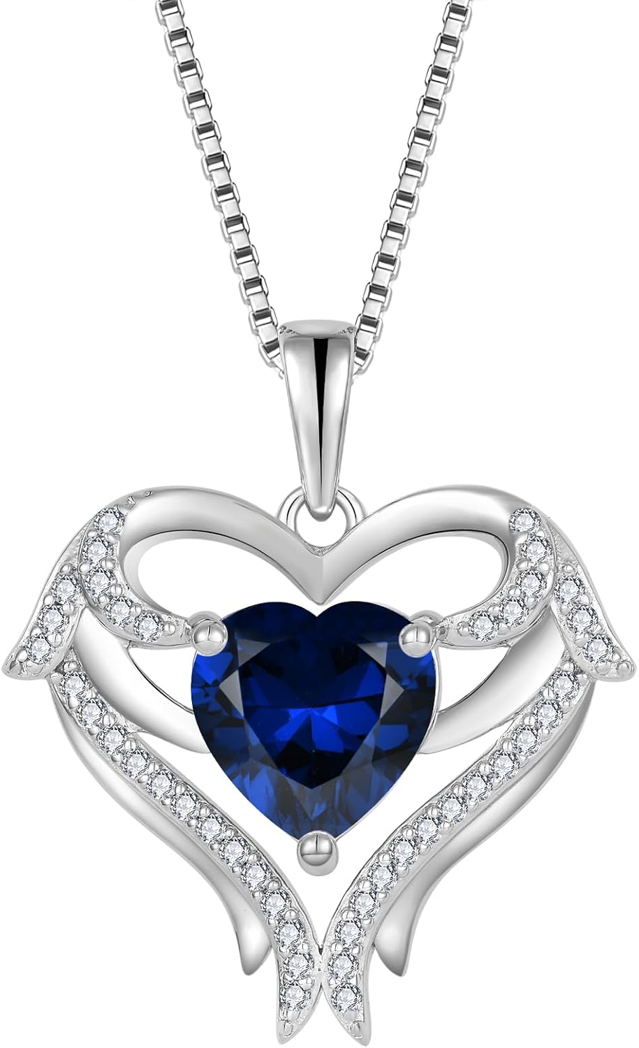 FJ Heart Angel Wings Pendant Necklace 925 Sterling Silver Birthstone Jewelry Gifts for Women