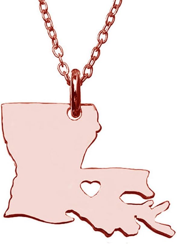 Meiligo 18K Gold Silver Country Map Charm Pendant Louisiana State Map Necklace Jewelry
