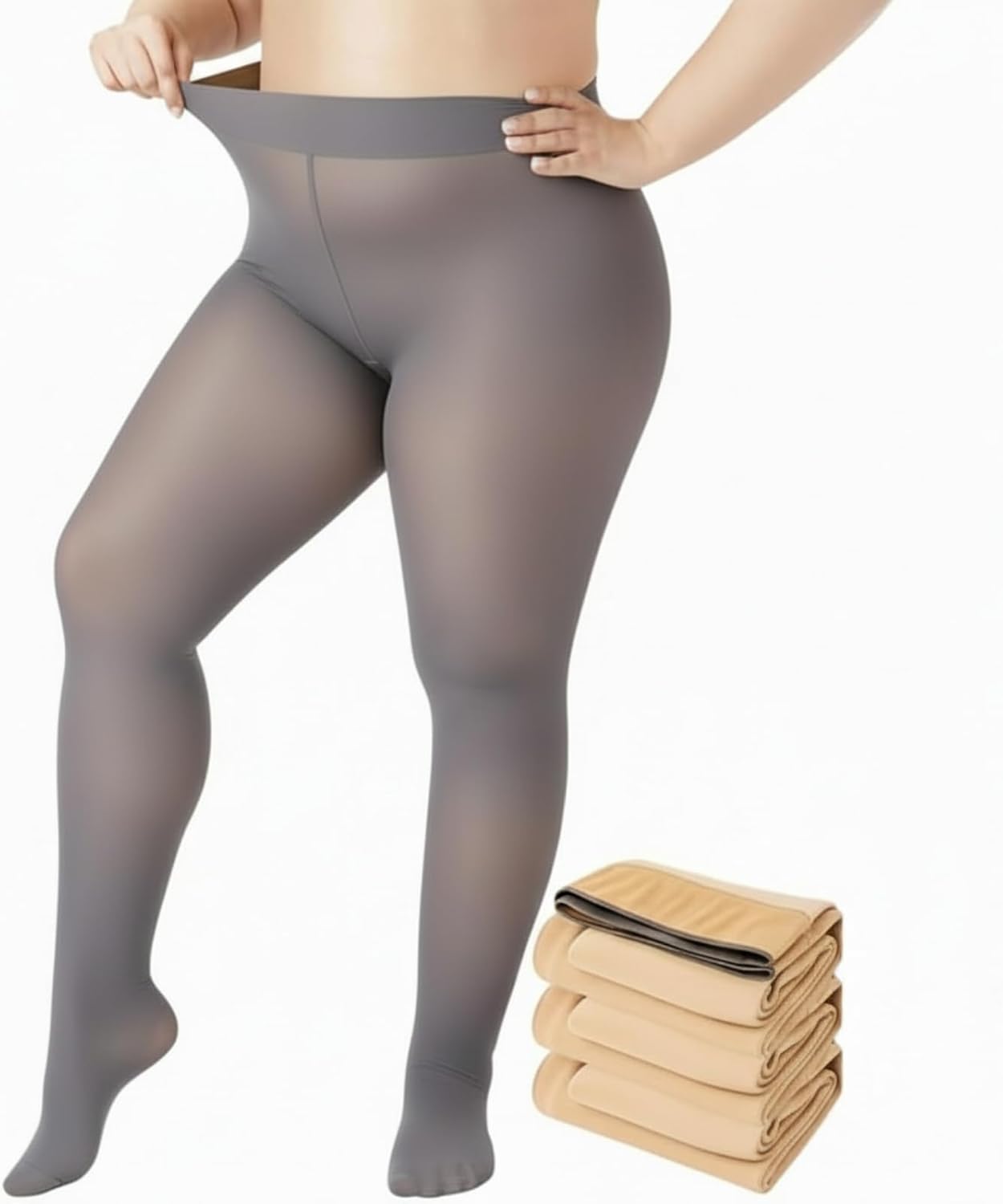 Plus Size Fleece Lined Tights, Women Thick Thermal Legging Winter Fake Translucent High Waisted Pantyhose