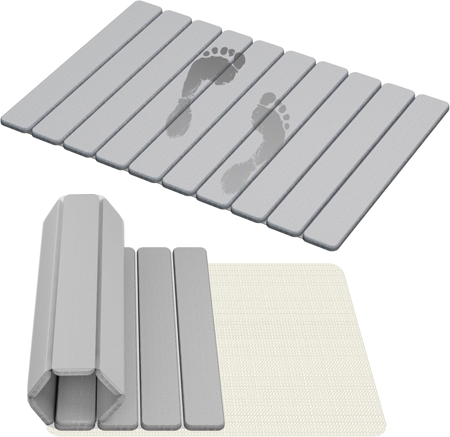 - 【Foldable for Easy Storage】Genius space-saving solution! It measures 23.5 x 15.4in. Unlike rigid mats, our stone bath mats for bathroom effortlessly rolls up or folds in half. Tuck it away neatly in a cabinet, closet, or even a drawer when not in use. Its compact form makes it exceptionally suited for small apartments, RVs.
