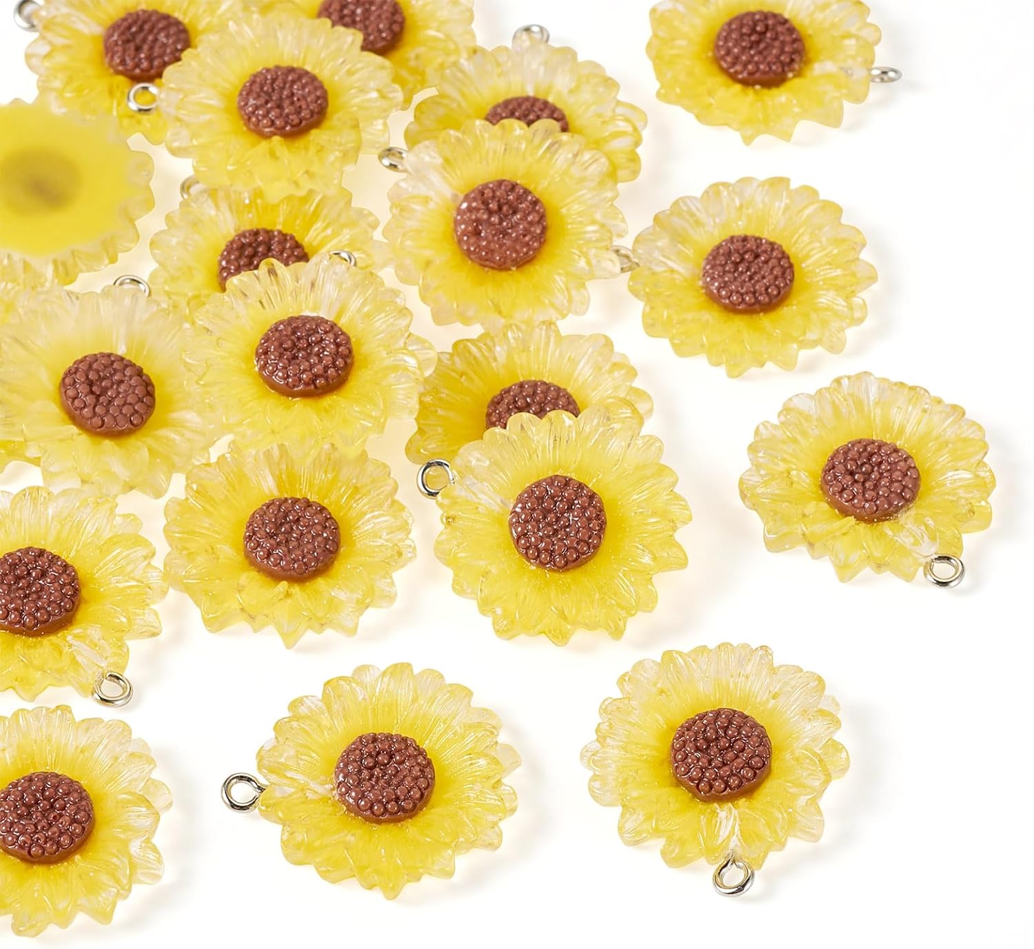 KISSITTY 20Pcs Sunflower Charm Pendants Flatback Daisy Charms Pendants Yellow Resin Flower Charm with Loops for DIY Craft Bracelet Necklace Earring Jewelry Making Accessories for Women