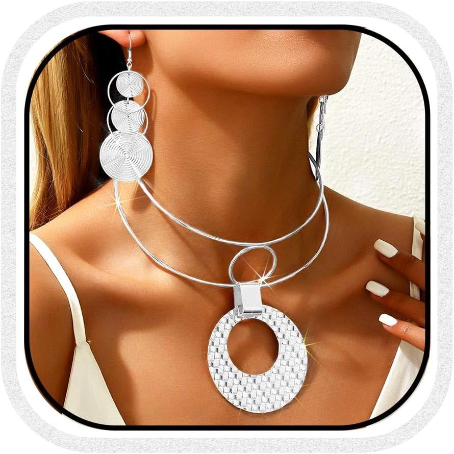 African Choker Necklace and Earring Set Statement Pendant Jewelry Sets for Women