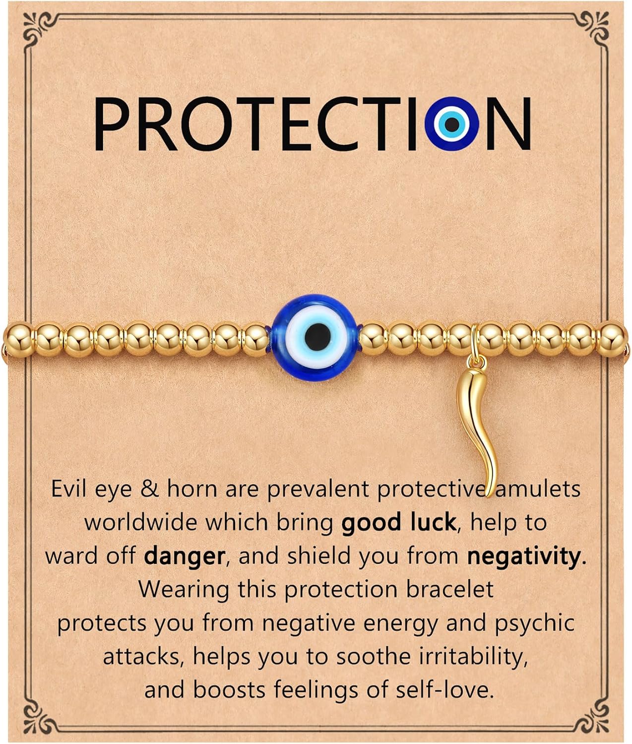 PINKDODO Good Luck Evil Eye & Horn – Protection Bracelet Jewelry Gifts for Birthday & Christmas