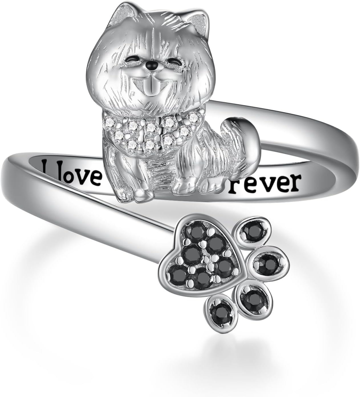 Pomeranian Gifts 925 Sterling Silver Pomeranian Ring Adjustable Cute Puppy Pomeranian Jewelry Gift for Women Dog Lovers