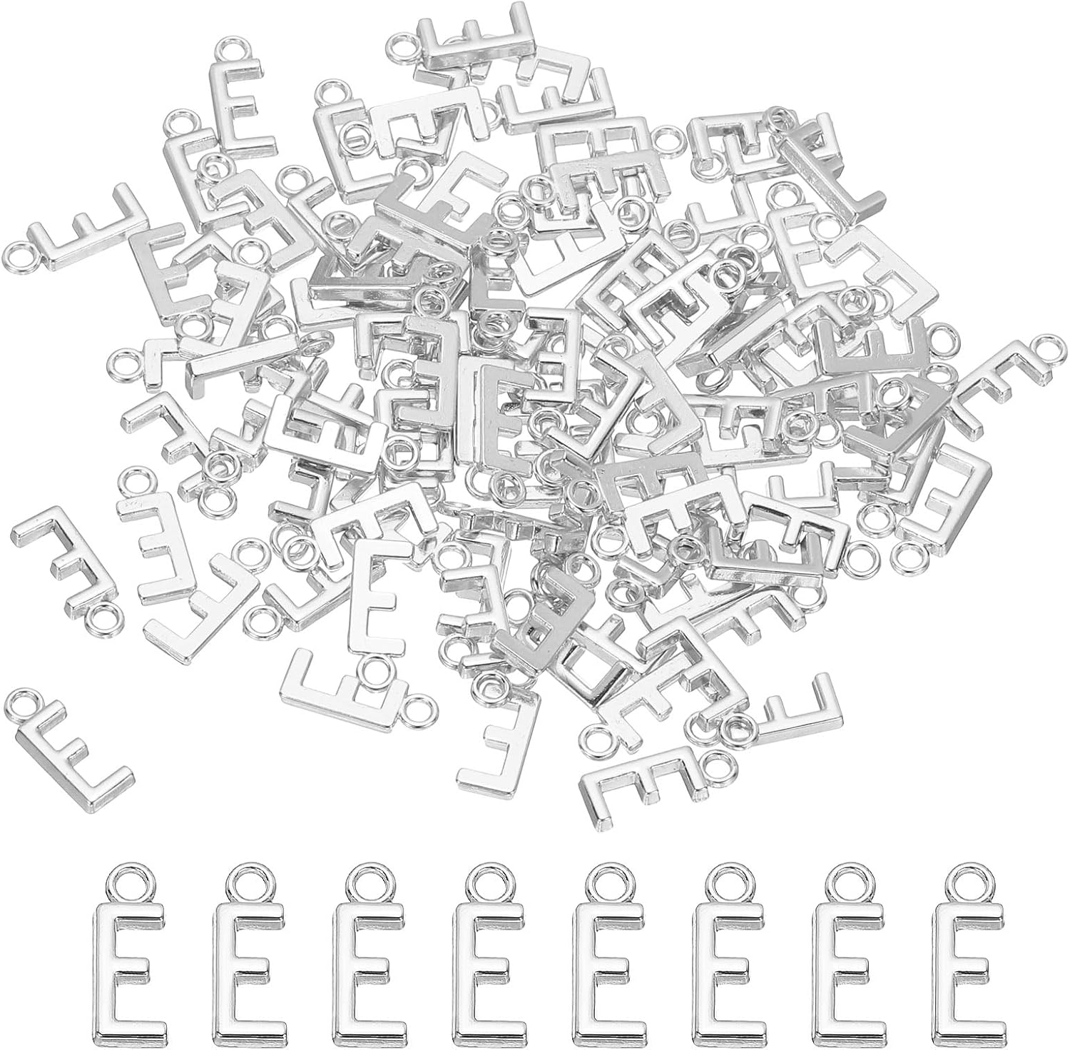 PATIKIL Letter Charm, 100 Pcs Alphabet Charm Initial Pendant Charm Bulk Cute DIY for Jewelry Making Bracelets Earrings Necklace Keychains Crafts, Dark Silver, Letter E