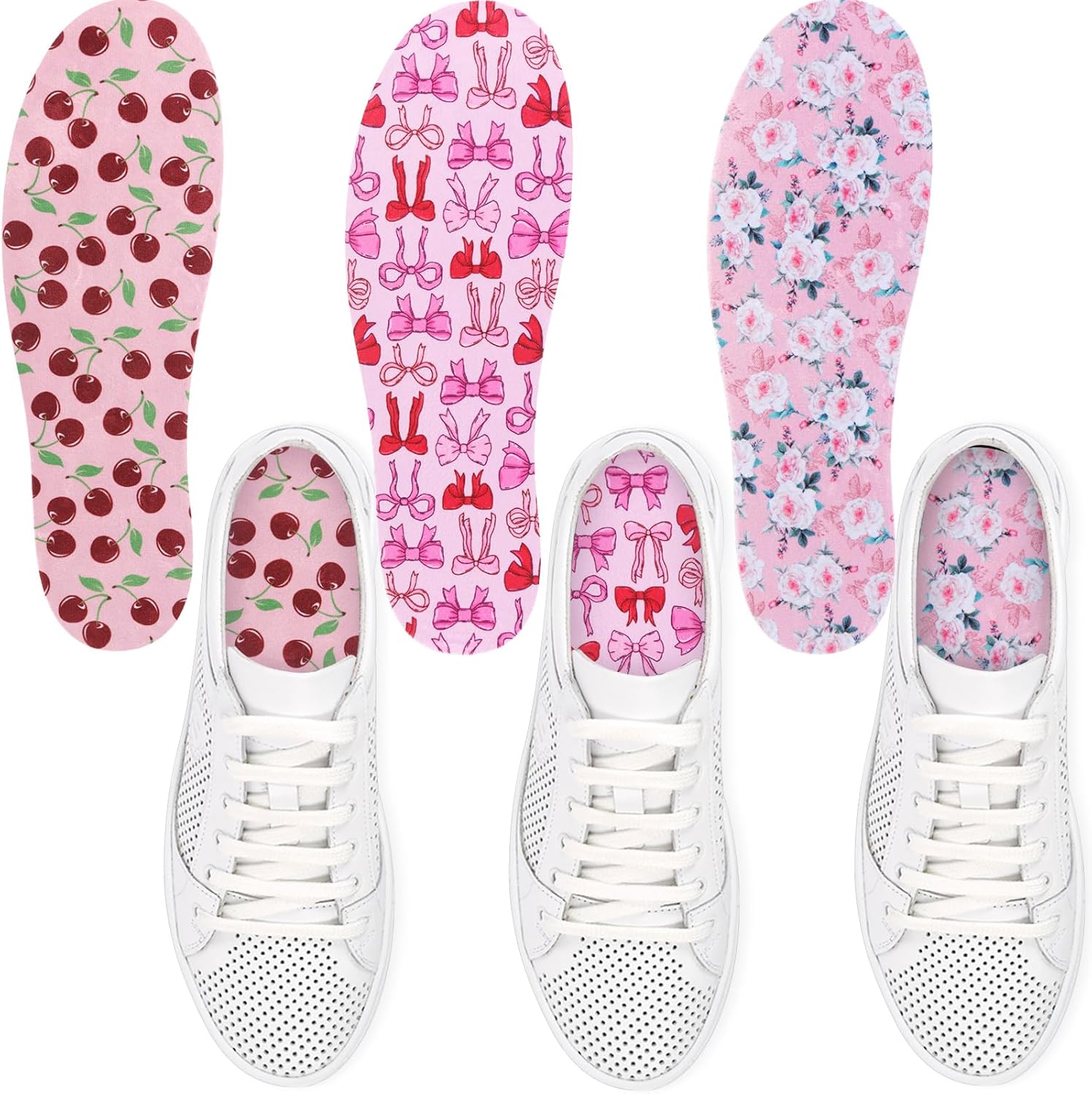 3 Pairs No Show Socks Sockless Shoe Liner Washable Barefoot Shoe Insoles No Slipping Inserts(Cherry Style)