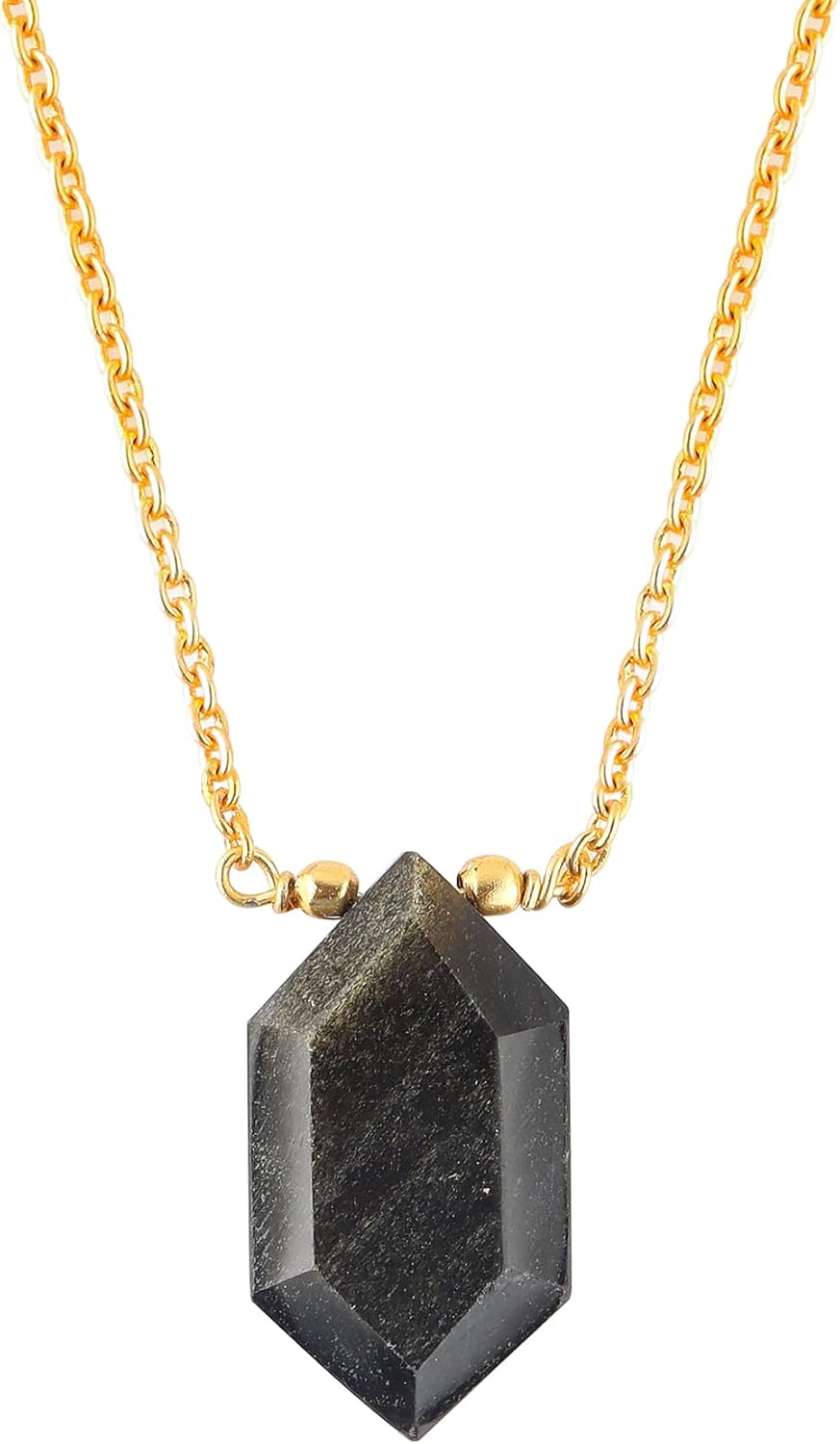 Natural Golden Obsidian fancy Hexagon Necklace Polished Gemstone Healing Crystals Gift for Her Birthday Gemstone Jewelry 18 inch Weight 10caratStone Size Approx 10 MM (Golden Obsidian)