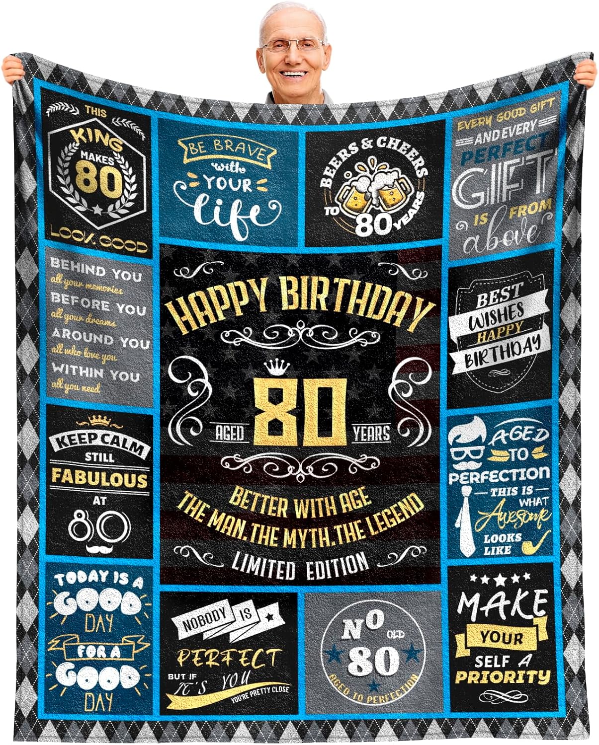 - 80 Year Old Birthday Gifts for Men: Imagine the joy on his face as he unwraps this beautiful blanket on his 80th birthday. It's the perfect gift to create a festive atmosphere and make the celebration extra special. It's an ideal 80th birthday gift for men, perfect for dads, grandpas, husbands, uncles, papas, colleagues, and any loved one who deserves a cozy treat.