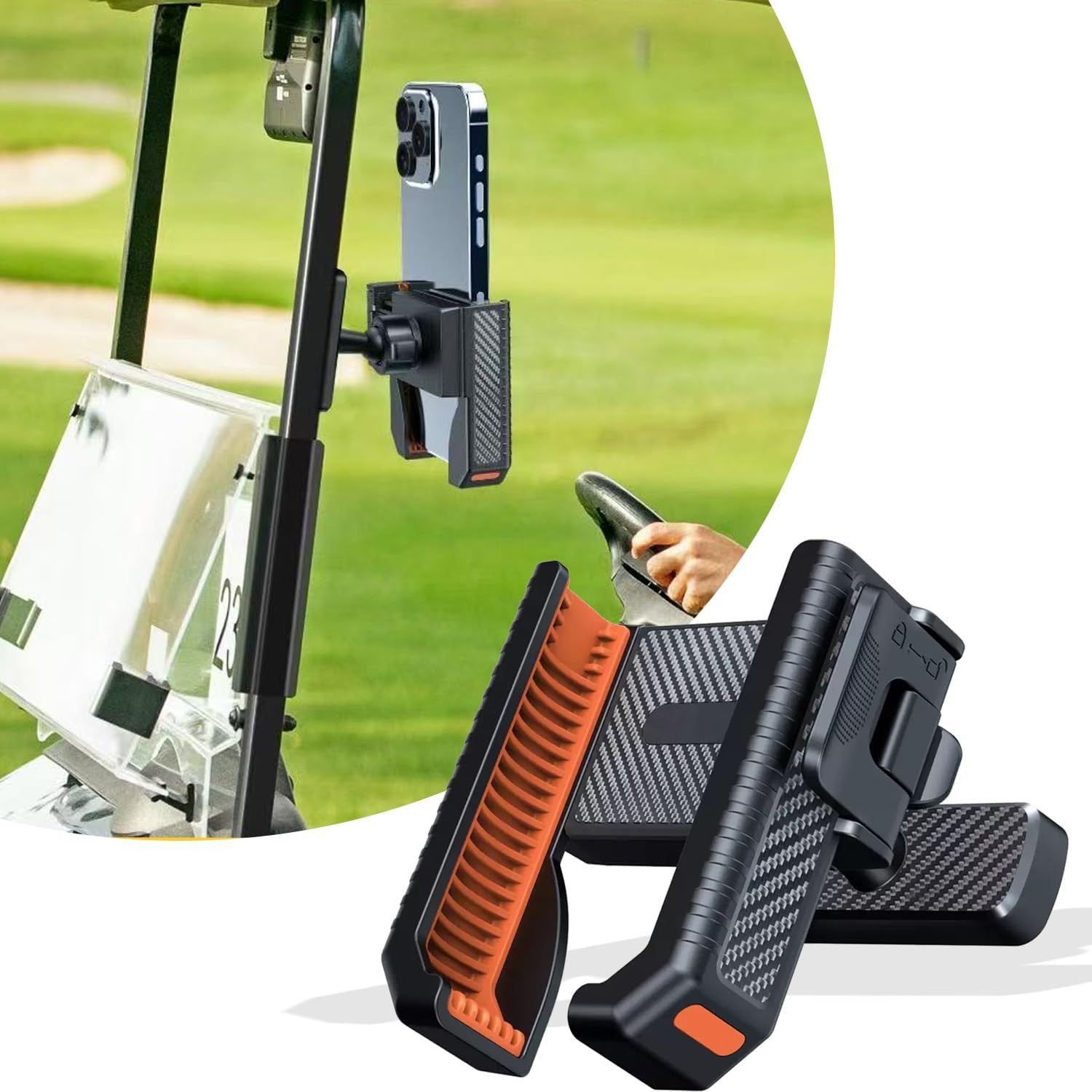 - 360° Adjustable Golf Phone Holder – Capture & Share Moments:The 360° rotating ball joint and open-camera design allow golfers to record swings, film shots, and view GPS apps at the perfect angle. This versatile golf cart phone holder enhances every round, making it a unique and meaningful gift for golfers who enjoy capturing memories or improving their game.