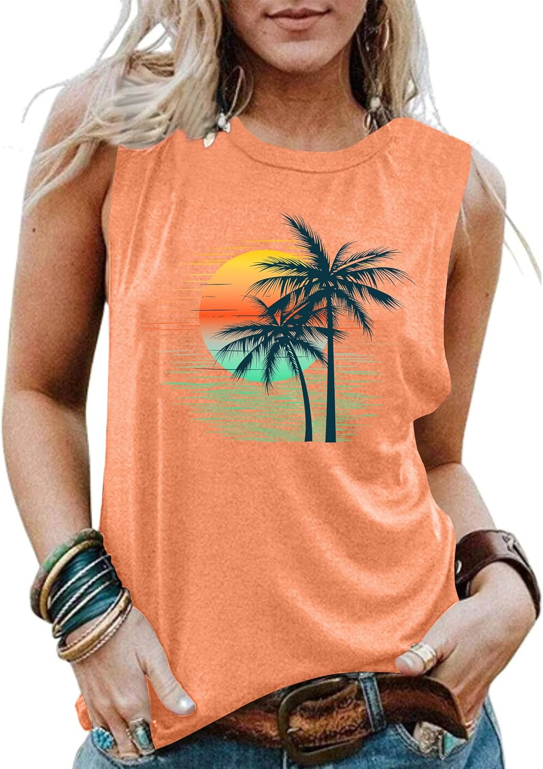 Hawaiian Beach Tank top for Women Summer Palm Tree Graphic Vacation Tops