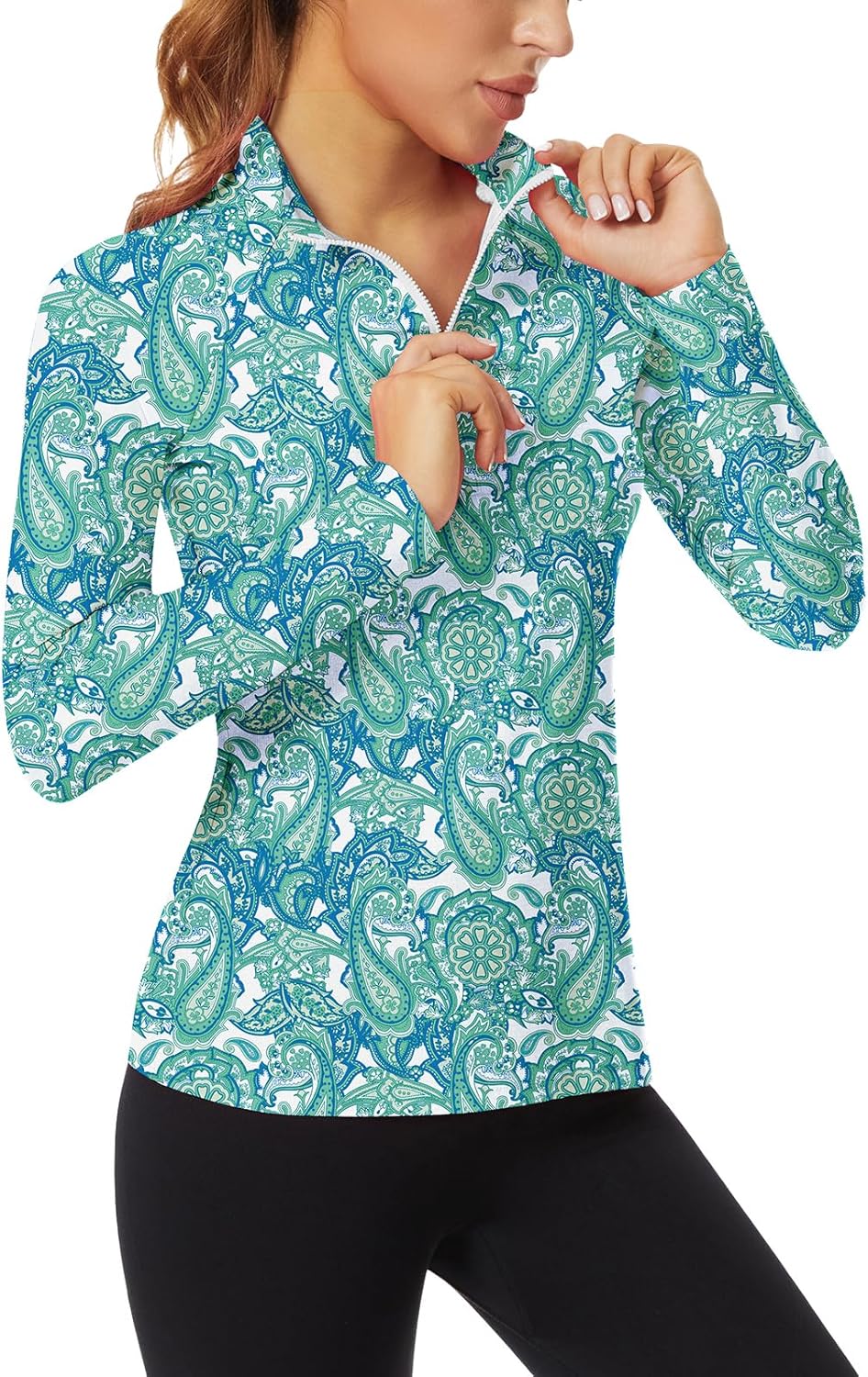 WOWENY Women's Long Sleeve Athletic Shirts Quarter Zip Pullover Collared T-Shirt Workout Print Tennis Top