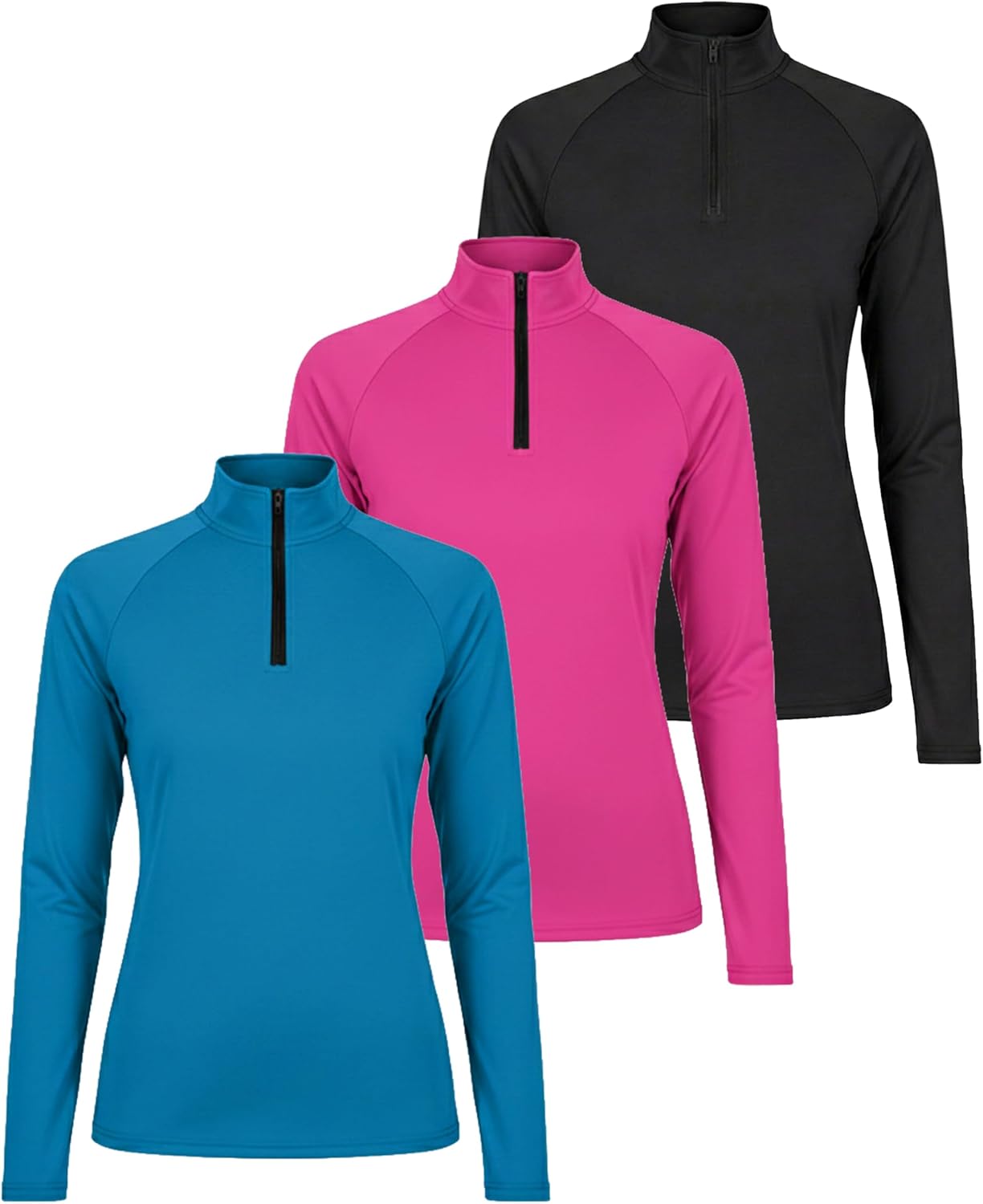 Real Essentials 3 Pack: Womens Dry-Fit Long Sleeve Quarter Zip & Full Zip Up Hoodie Workout Jacket (Available in Plus)