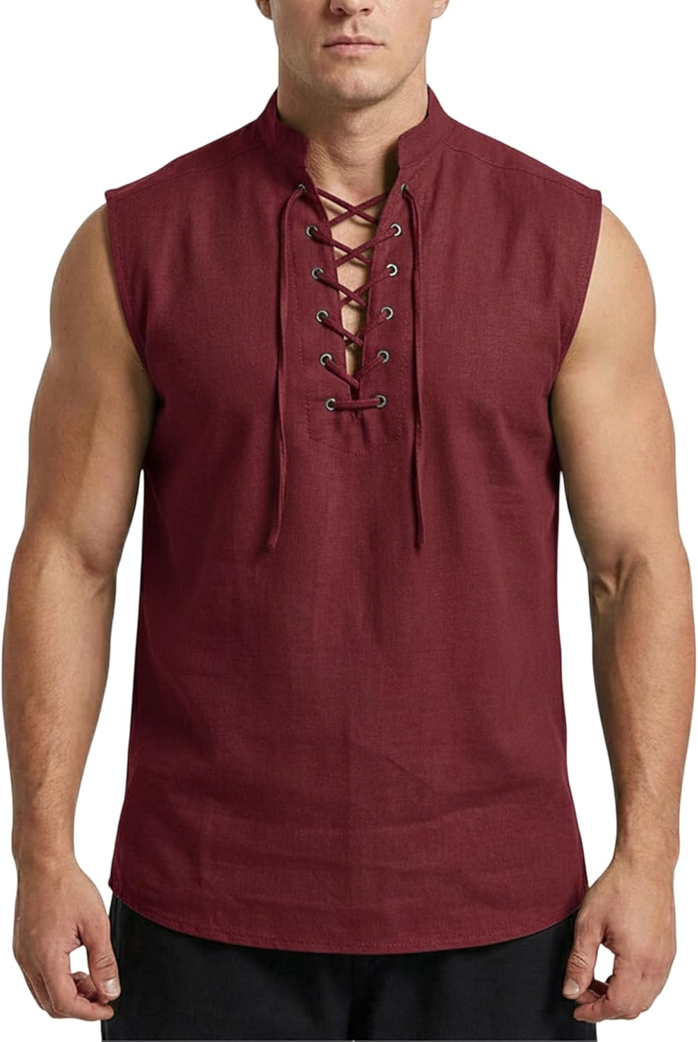 BAKUGOU Mens Medieval Lace Up Sleeveless Shirt Viking Renaissance Pirate Tunic Top Warrior Costume Vest for Men