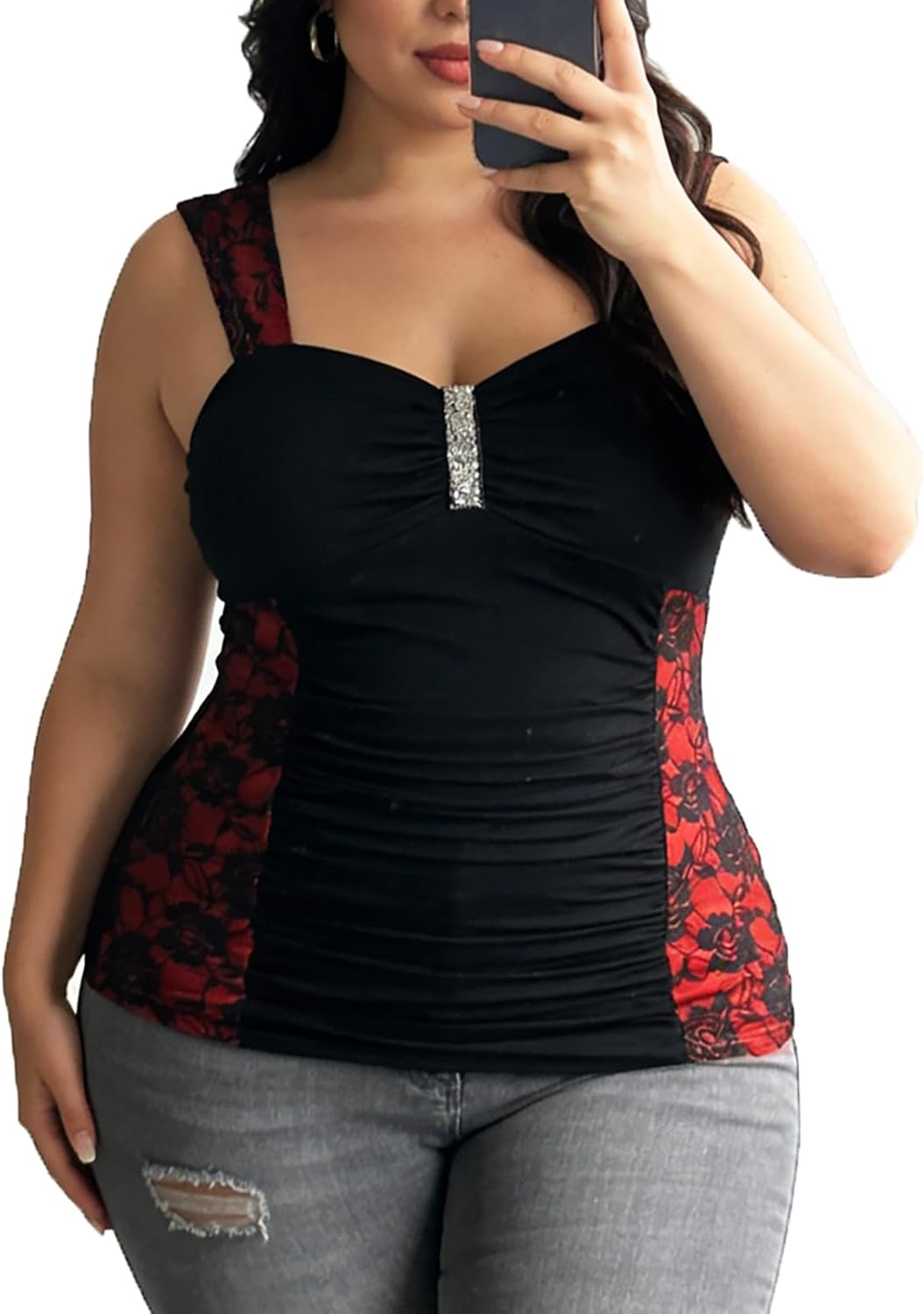 Nihsatin Women's Plus Size Lace up Ribbed Tops Casual T-Shirts Gothic Corset Top