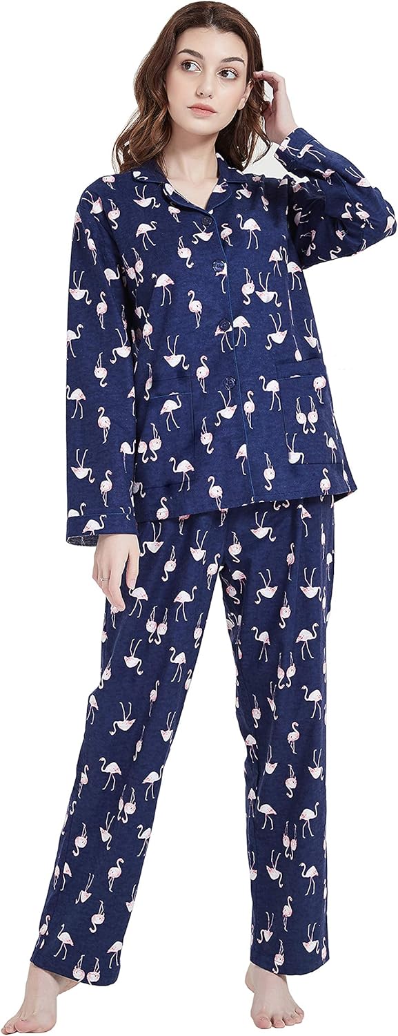 amaxer Women's Flannel Pajama Set 100% Cotton Soft Christmas Pajamas For Women Long Sleeve Pjs Button Down Warm Sleepwear