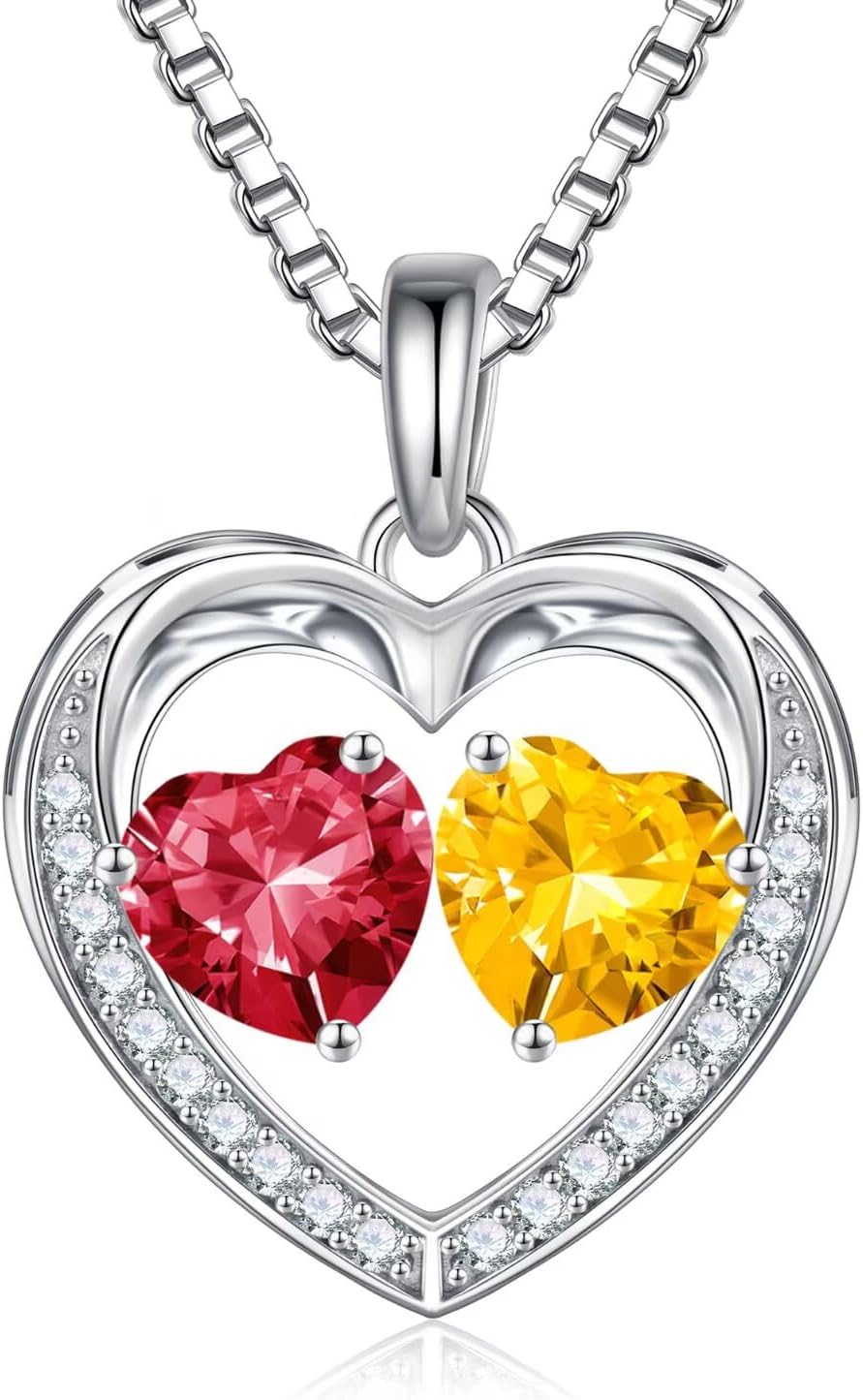 Iefil Birthstone Jewelry for Women - 925 Sterling Silver Birthstone Necklace, Anniversary Birthday Gifts for Women, Jewelry Gifts for Her Wife Mom Daughter