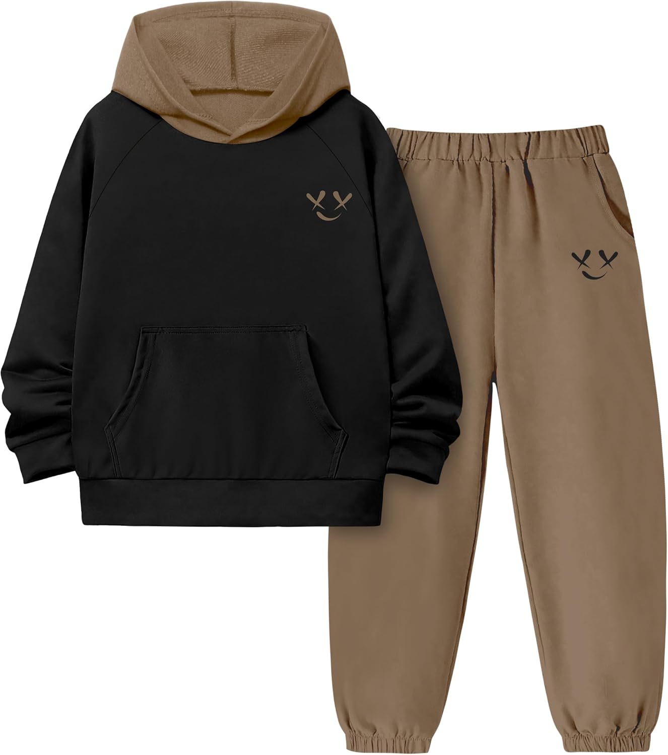 MIGU Boys Clothes Smiley Face Print Sweatshirt Hoodie For Boys Sweatpants Fall Outfit 2Pcs Sweatsuit