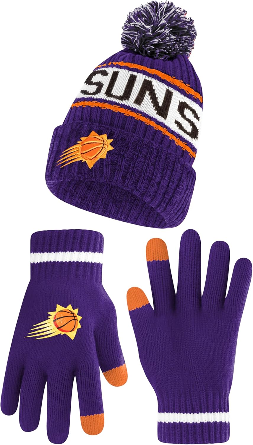 Nba Official Super Soft Winter Beanie Knit Hat With Extra Warm Touch Screen Gloves