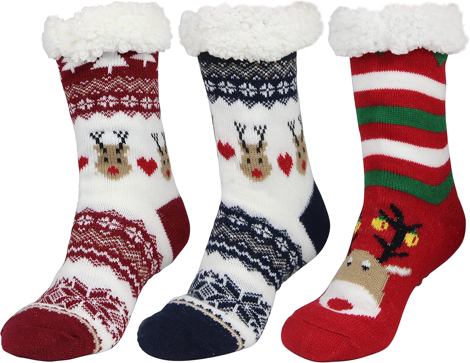 Slipper Socks for Women with Gripper - Winter Non Slip Thick Fuzzy Socks - Warm Cozy Christmas Gift
