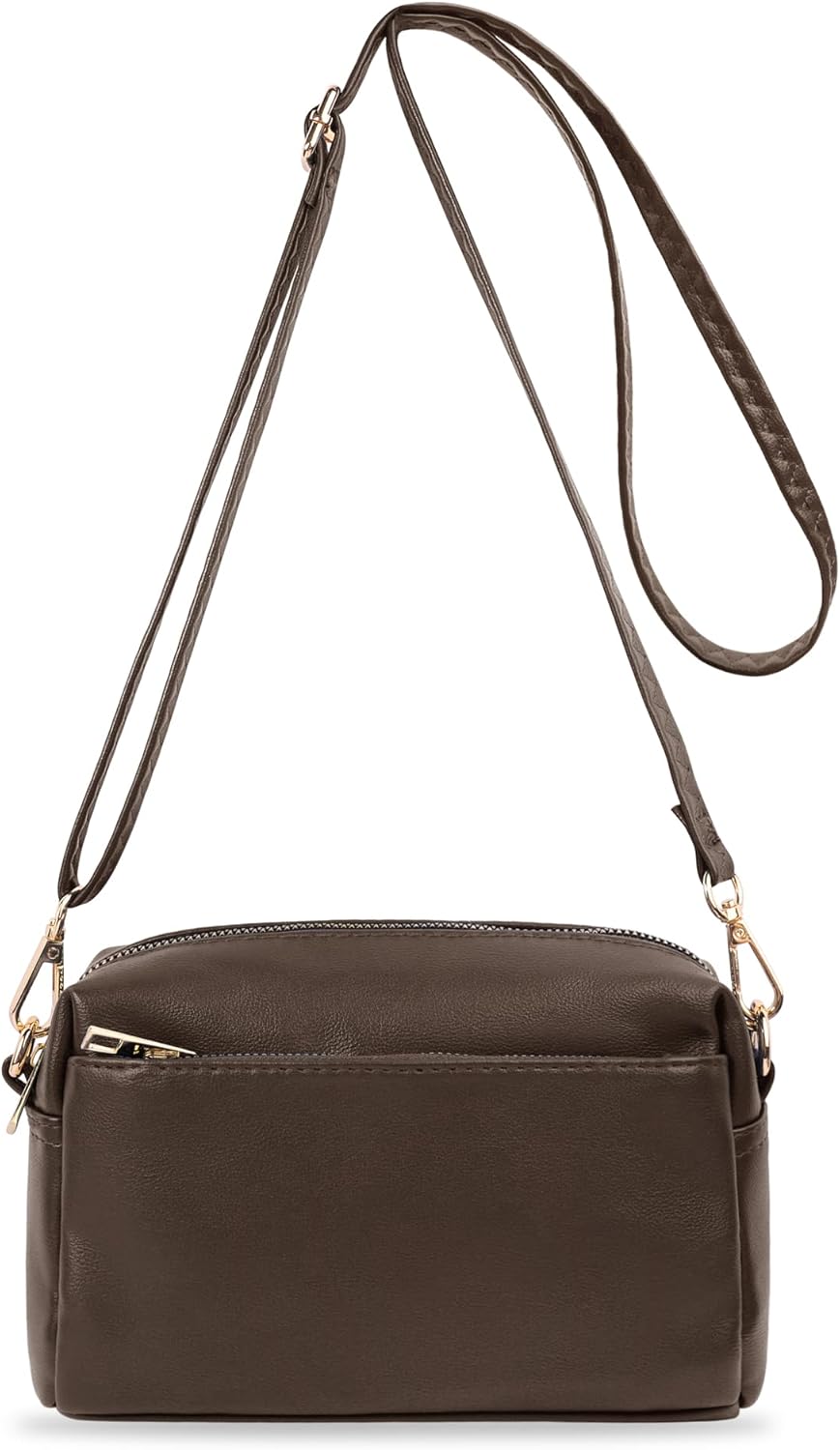 VOROLO Crossbody Bag Small Leather Triple Zip Crossbody Purse Shoulder Bag with Ajustable Strap for Women Dark Gray
