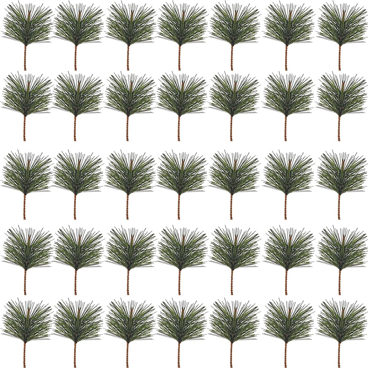 TIHOOD 35PCS Artificial Green Pine Needles Branches - Small Twigs Stems Picks - Fake Greenery for Christmas Garland Wreath Embellishing and Home Holiday Garden Decoration