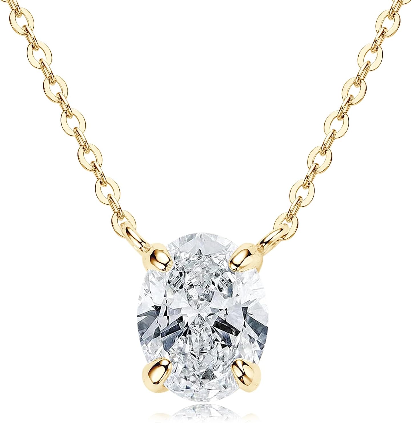 2ct Oval Moissanite Pendant Necklace, D Color VVS1 925 Sterling Silver Platinum Plated Dainty Pendant for Women Wife Mothers Day Jewelry Gifts